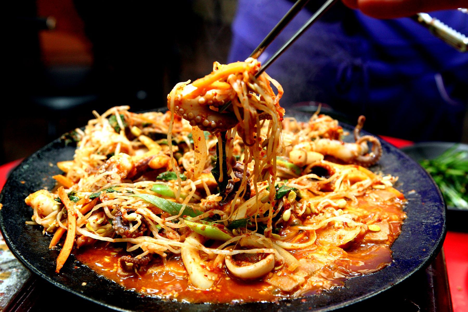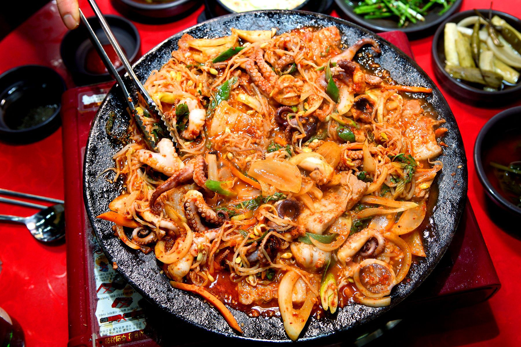 아삭아삭한 콩나물에 갖은 야채들과 한데 어우러진 삼겹살과 쭈꾸미는
