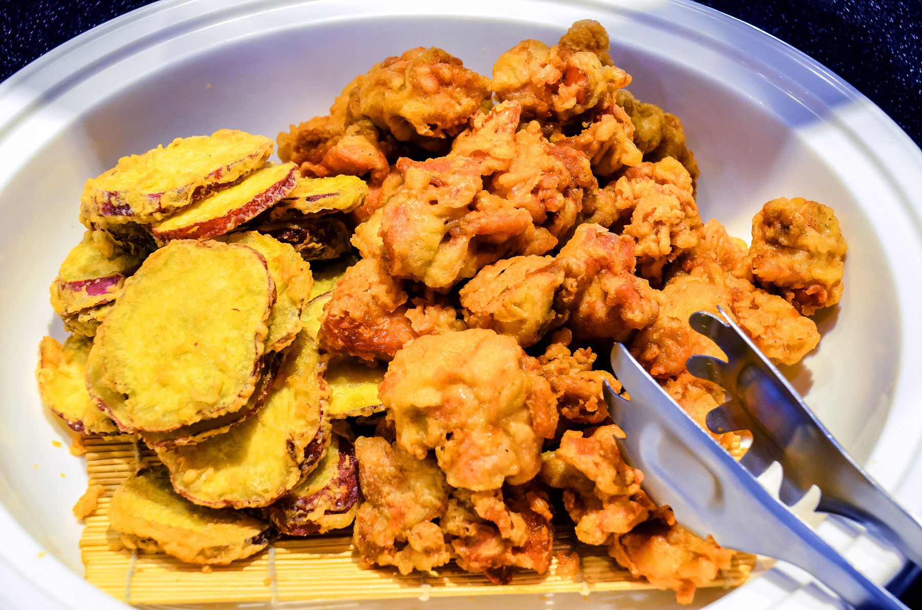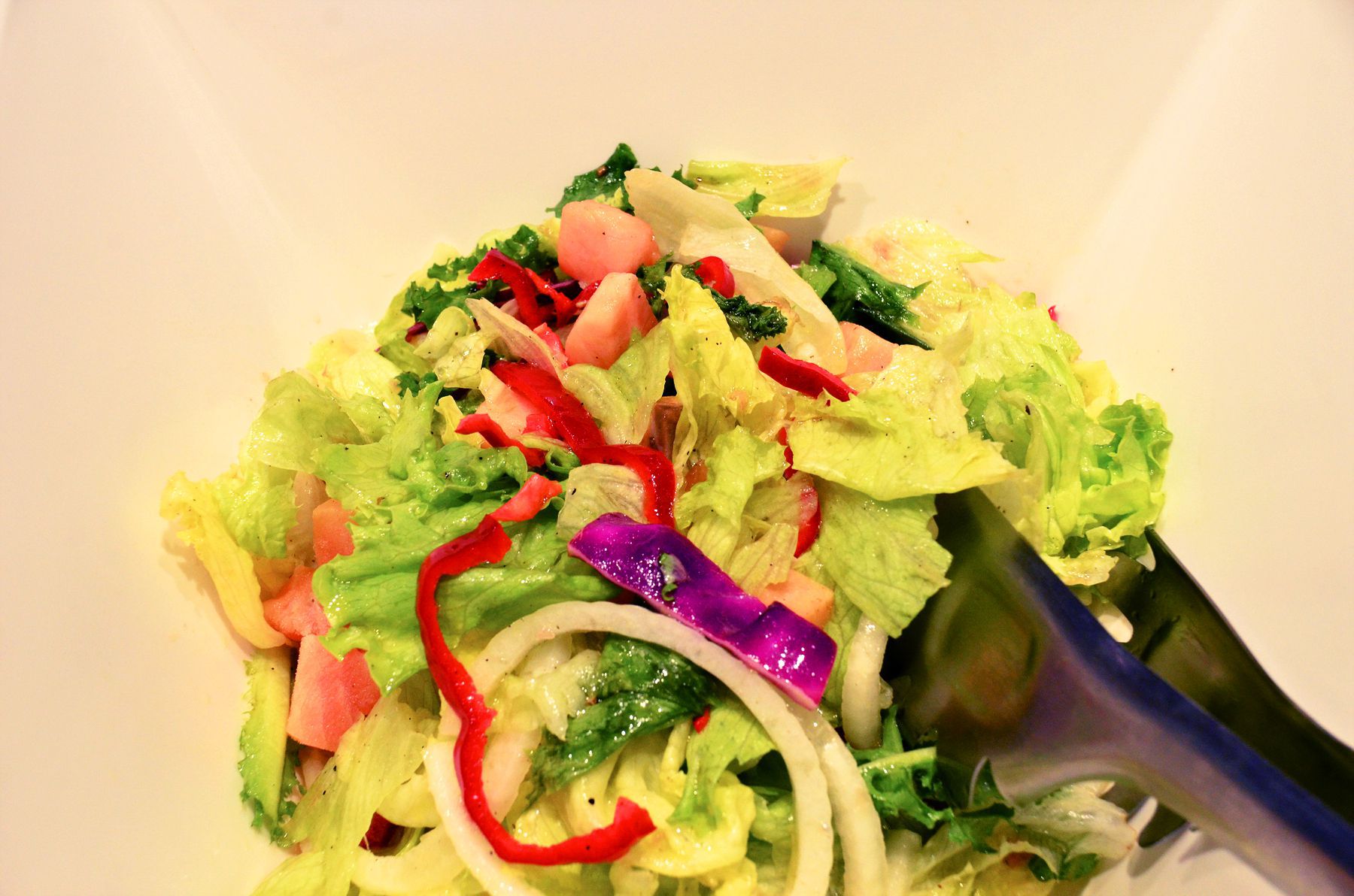 샐러드바있는 매콤한 쫄면과 바삭한 튀김, 상큼한 샐러드 ,볶음밥 등