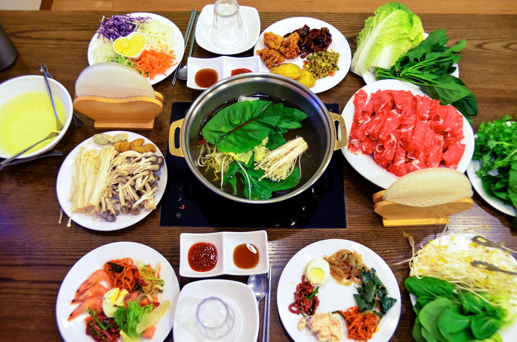 신선한 야채와 버섯을 넣고 엄선된 고기를 넣고 살짝 데쳐 원하는 소스에 쿡! 찍어 드시면 그 맛이 정말 일품입니다.