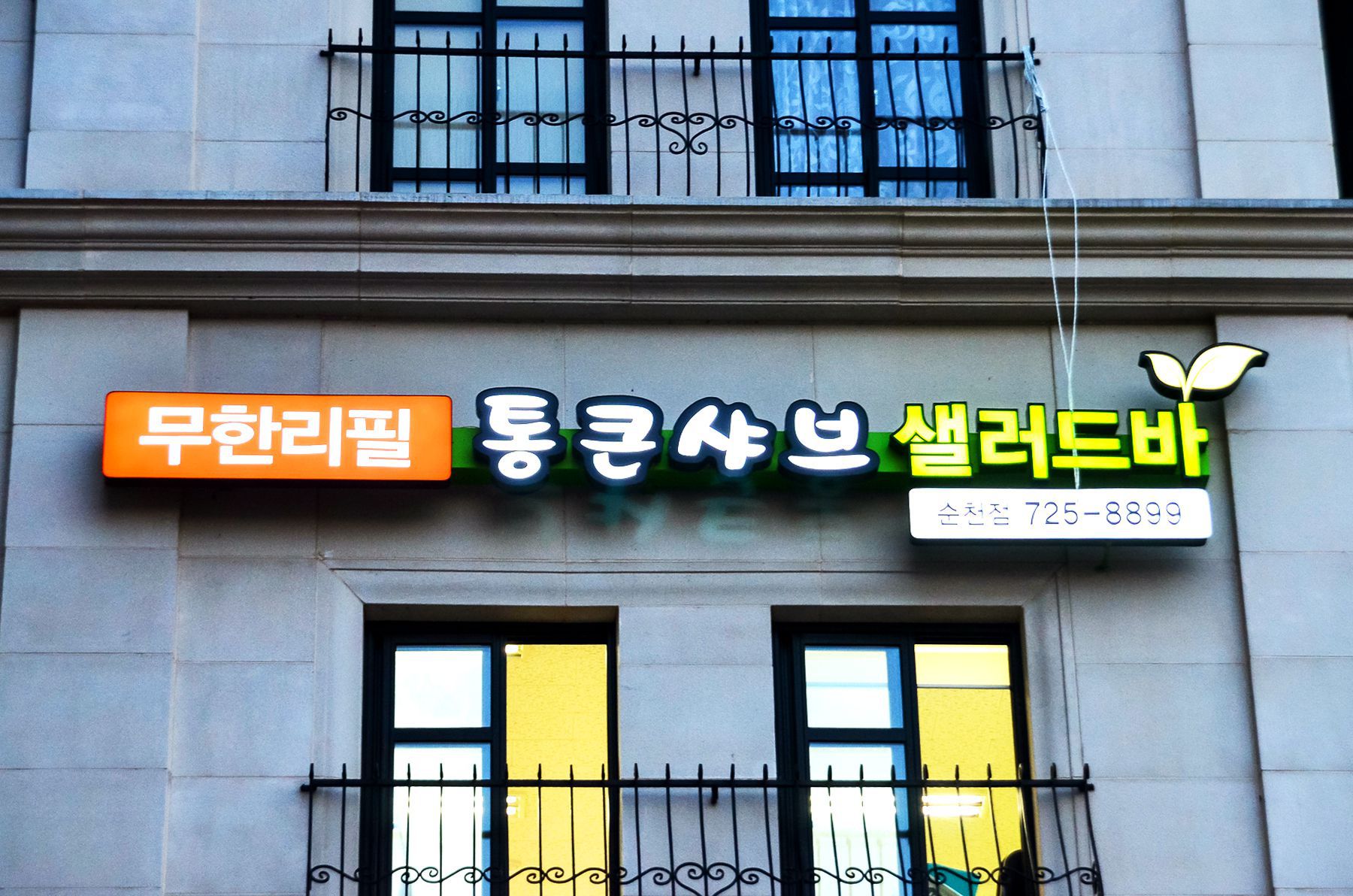 깔끔하고 담백하게 우려낸 육수에 10가지 채소와 20여가지 다양한 종류로 이루어진 샐러드바를 자랑하고있는 '통큰샤브'입니다.