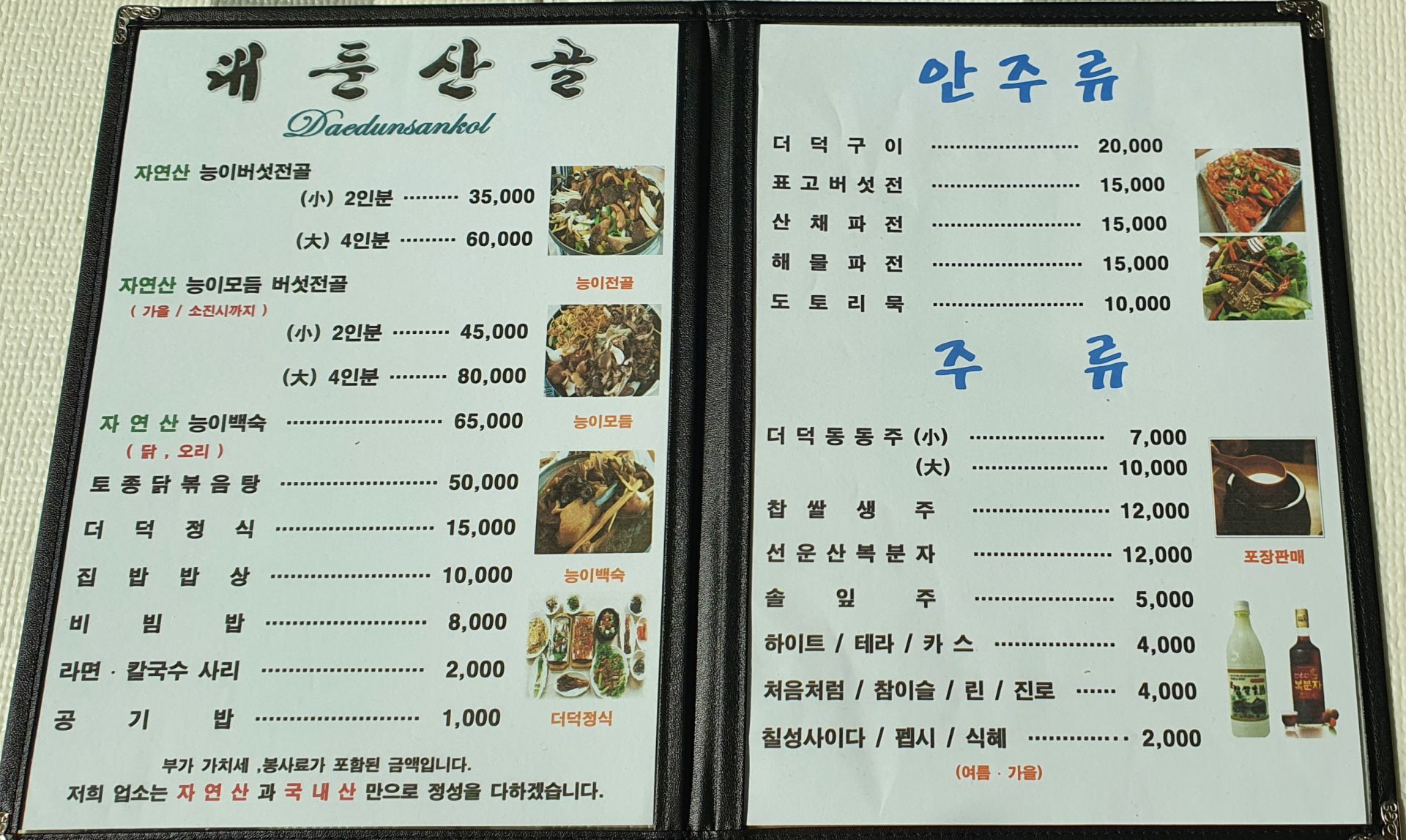 능이버섯전골,오리백숙,더덕정식등을 더 특별하게 맛볼수 있는데요