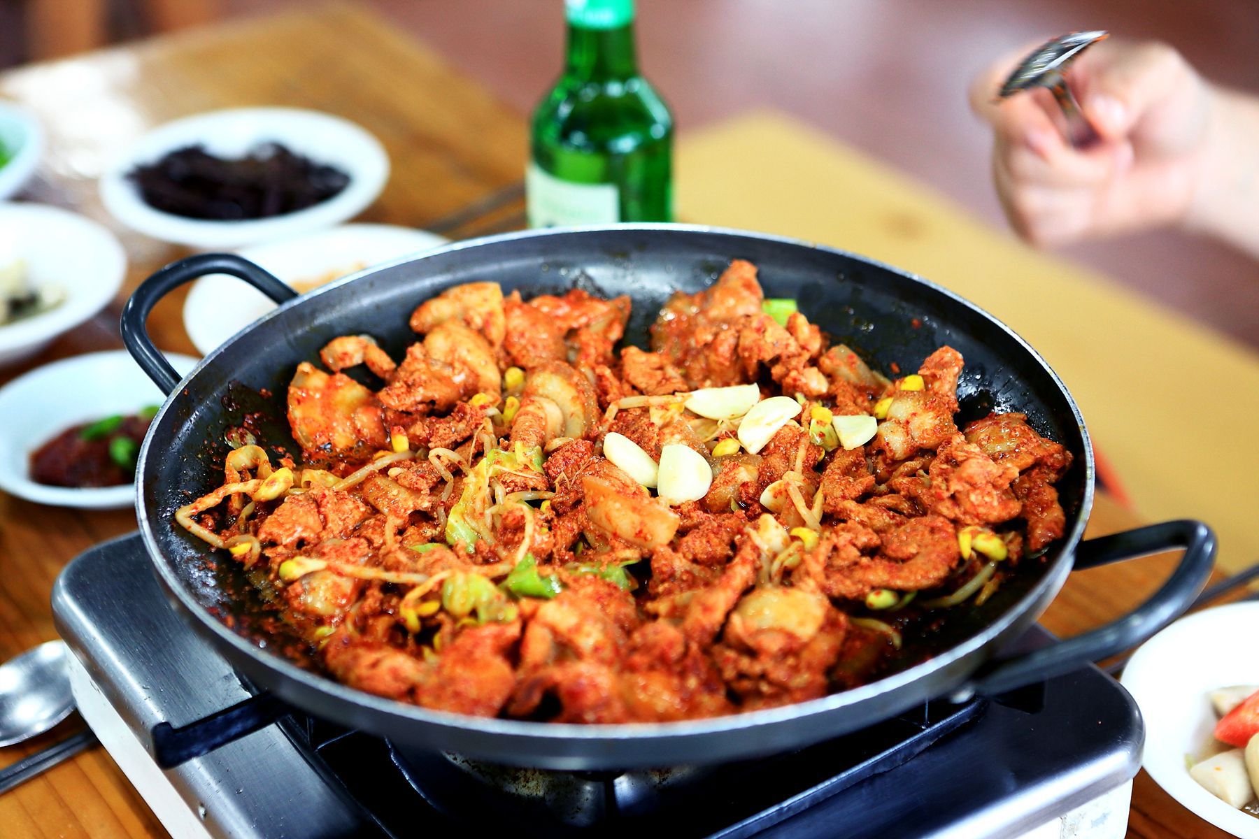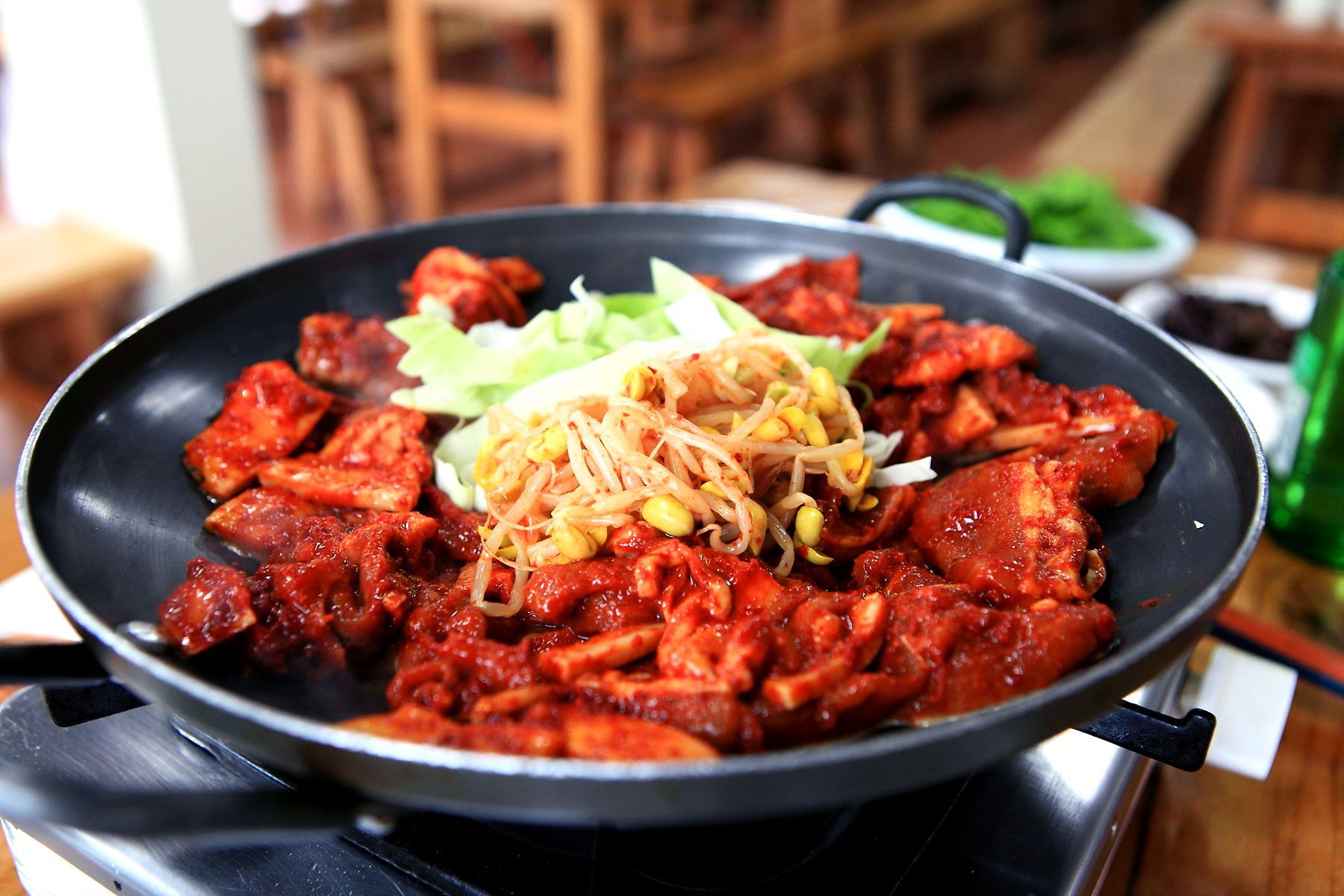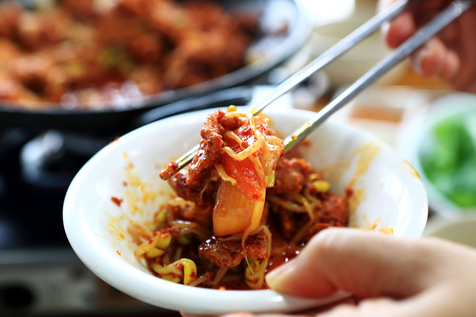 아삭한 콩나물에 갖은 야채와 통통한 흑돼지를 넣어 불에 달달 볶아주면