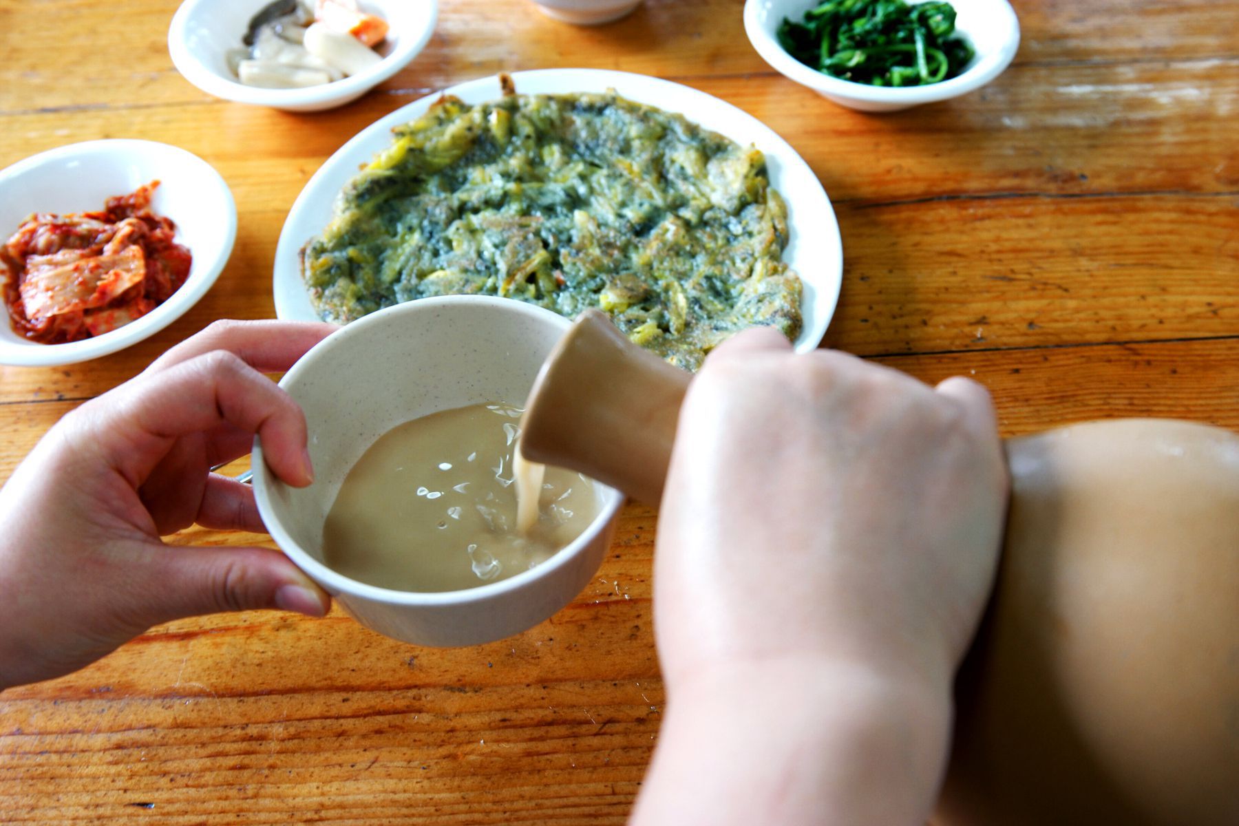 그런 모밀을 전으로 부쳐 고소함까지 더하여 이를 좁살막걸리와 한잔하시면 환상적이 궁합으로