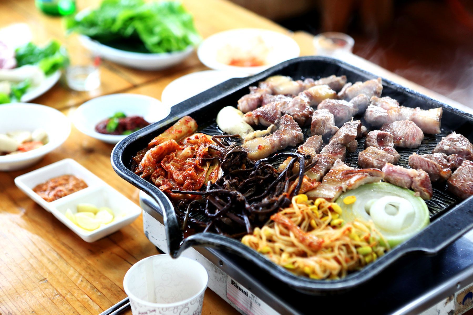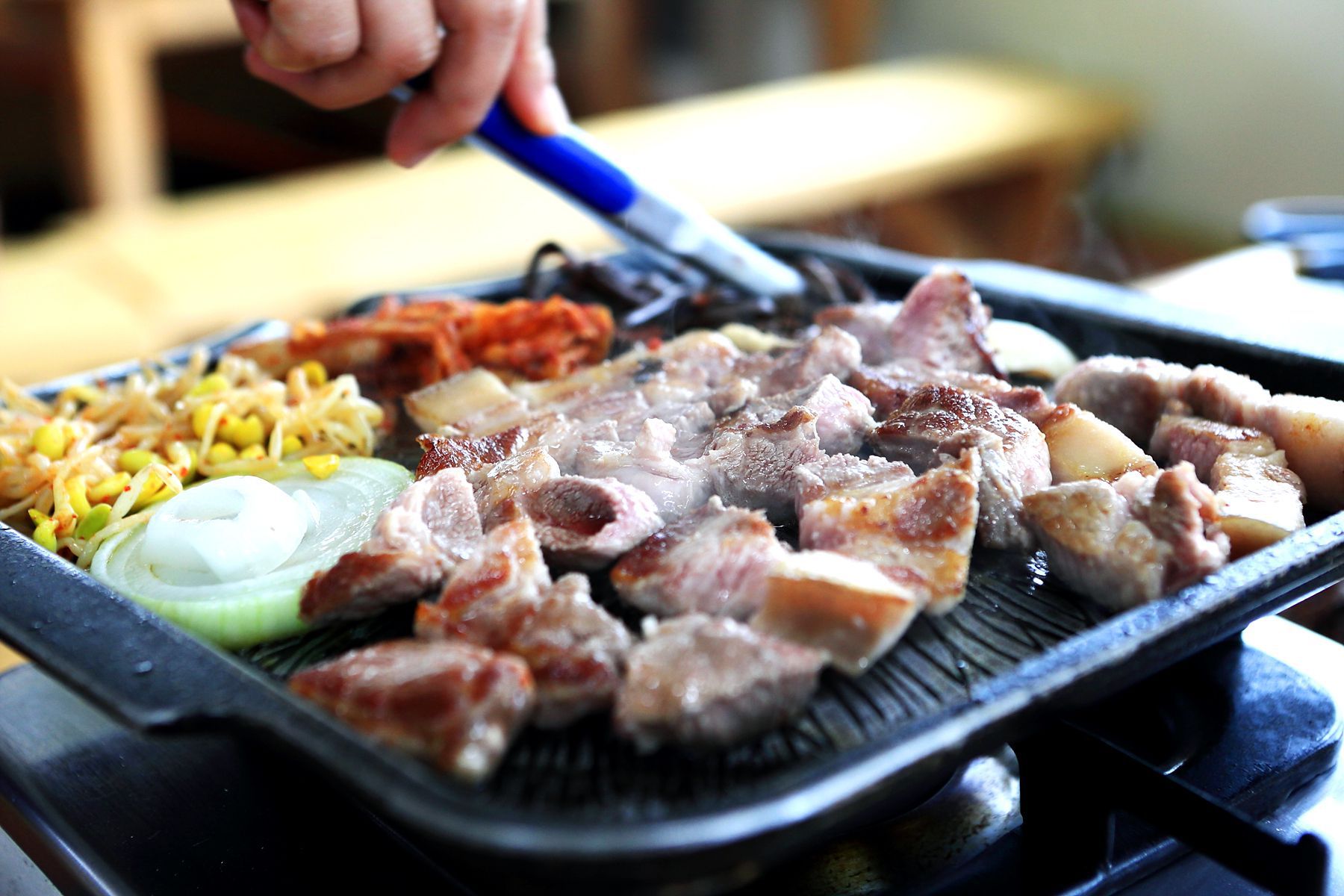 제주도에 오면 특히 더 맛있게 느껴지는 고사리도 김치와 콩나물을 같이 불판에 구워 먹으면