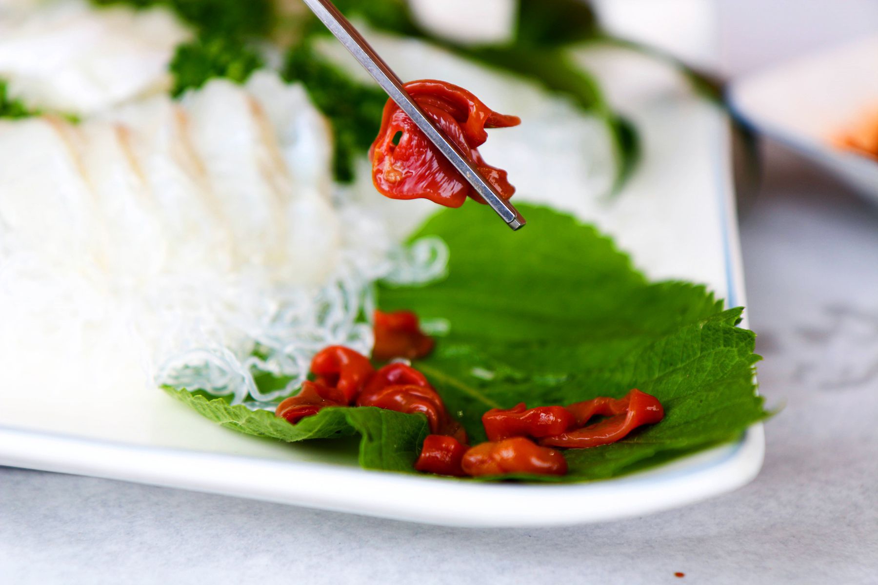 담백한 맛으로 그대로를 즐기실 수 도 있지만 싱싱한 쌈을 싸서 드시면