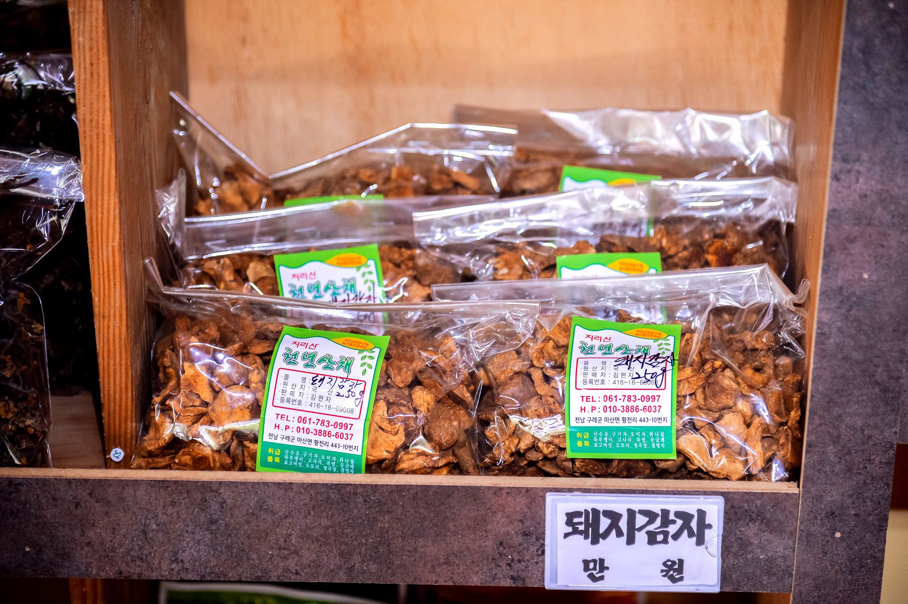 지리산대통밥 에서 사용하는 죽염, 또는 구례에서 직접 채취한 말린 산나물등 또한 식당 한켠에 마련되어 있으며