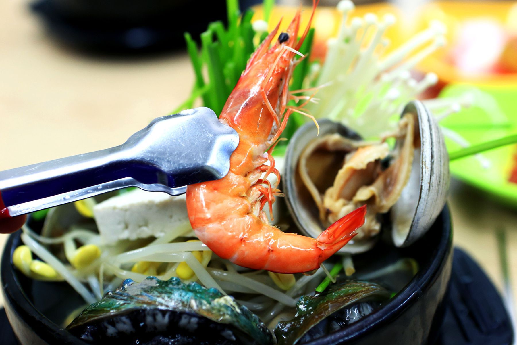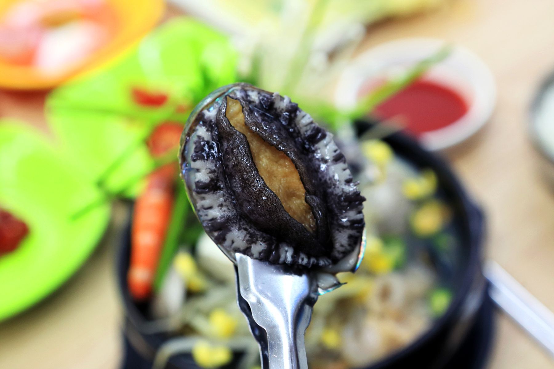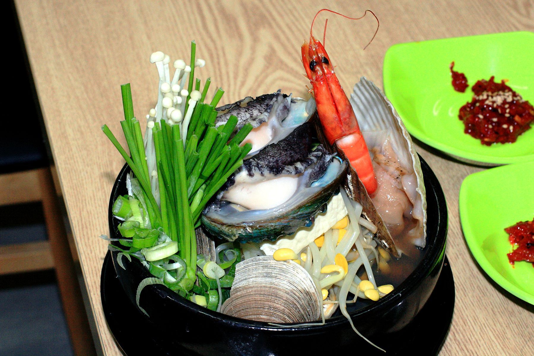 뜨거운 뚝배기의 열기로 익혀진 식감좋은 전복의 풍부한 맛과 영양 그리고 신선함이 한눈에 보이는 가리비,새우등