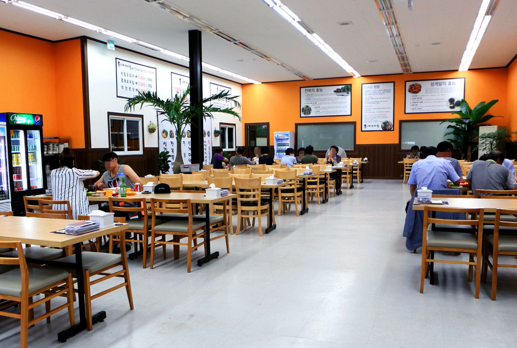 단체손님이 좋아하는 넓고 쾌적한 좌석을 갖춘 실내좌석과