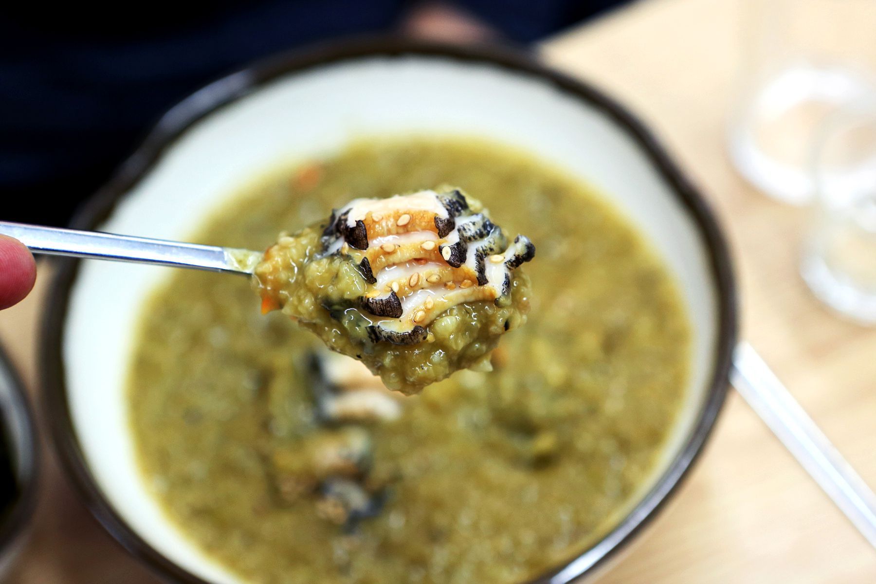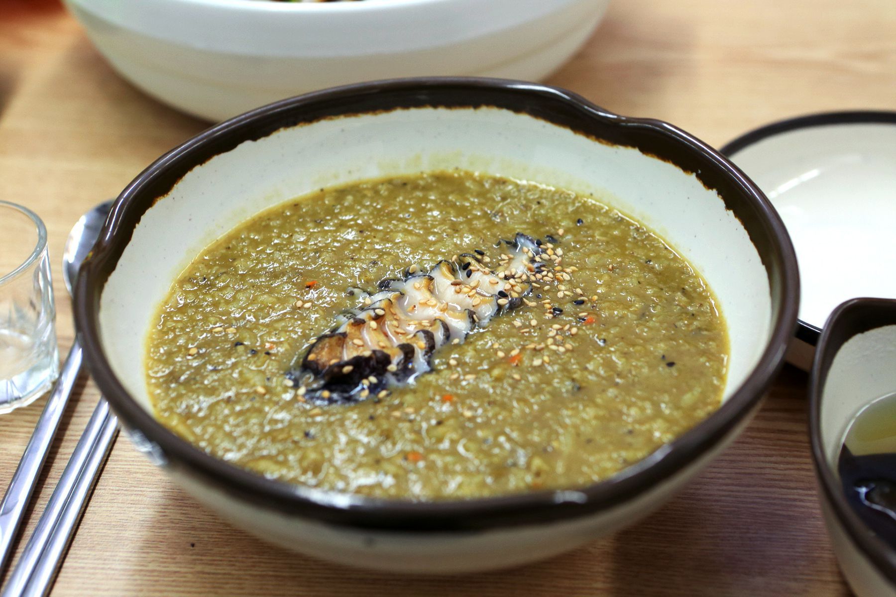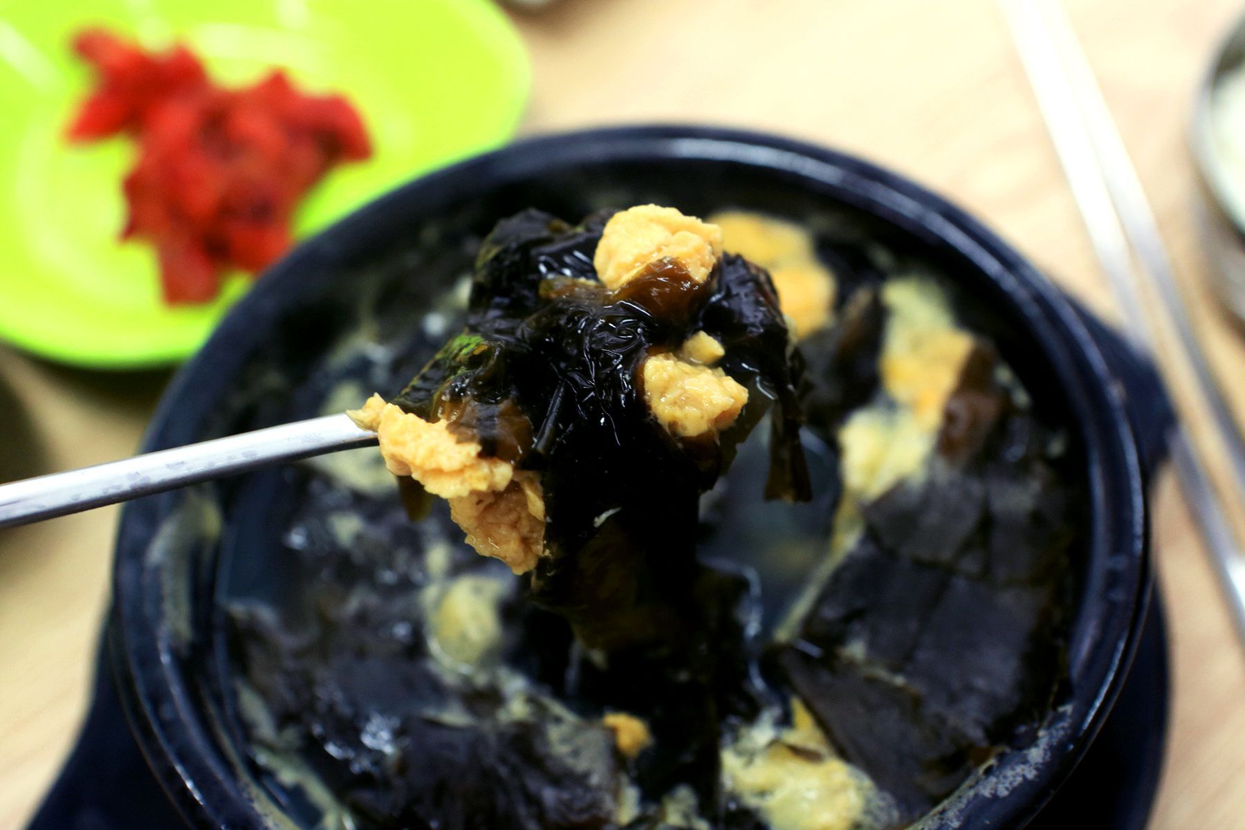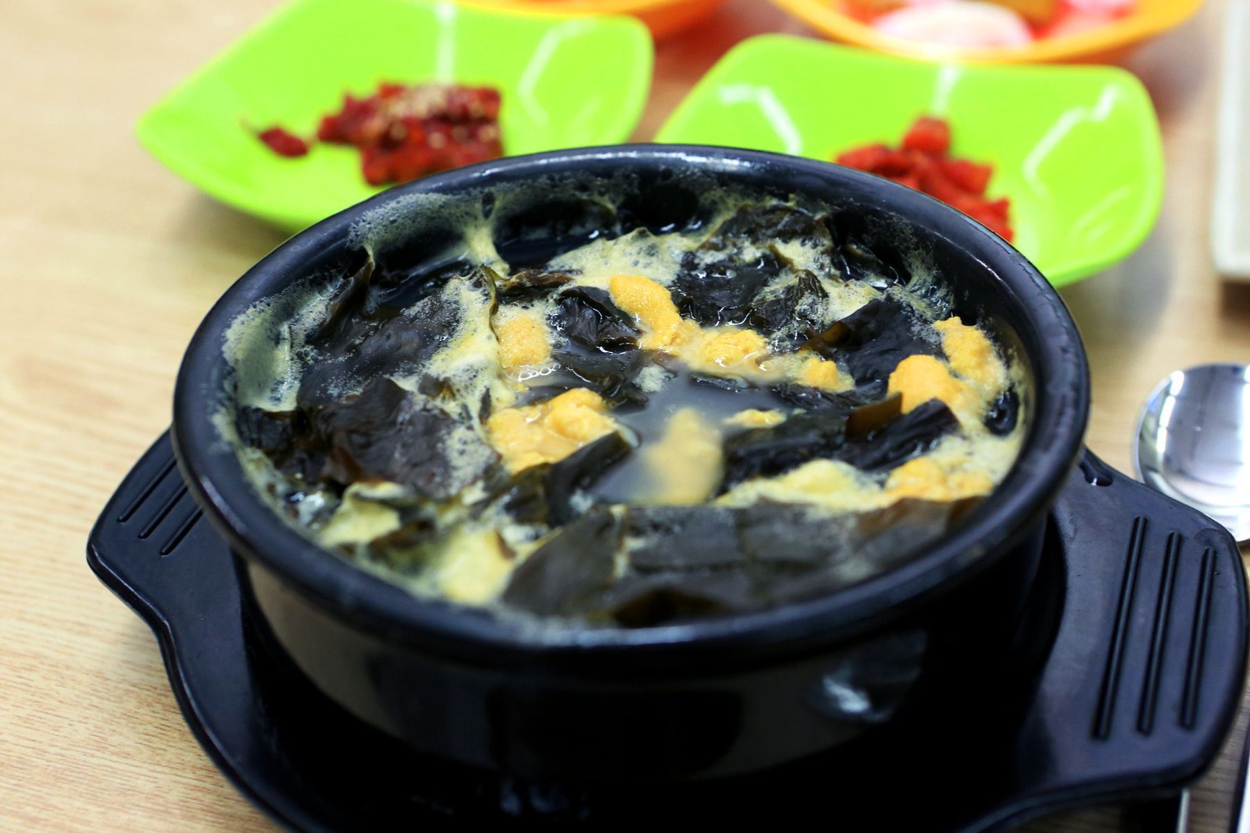 바다의 깊고 진한 향을 가득품은 성게가 가득 들어가 있으며 가볍게 한수저 뜨다보면 어느새 바닥을 보이는 성게미역국은