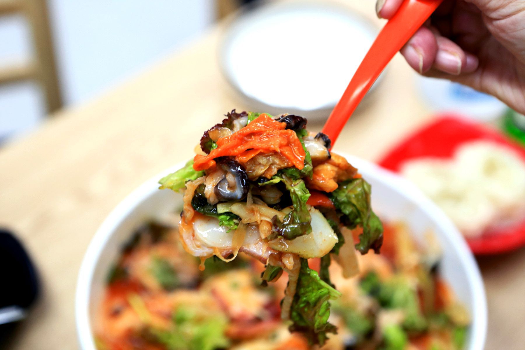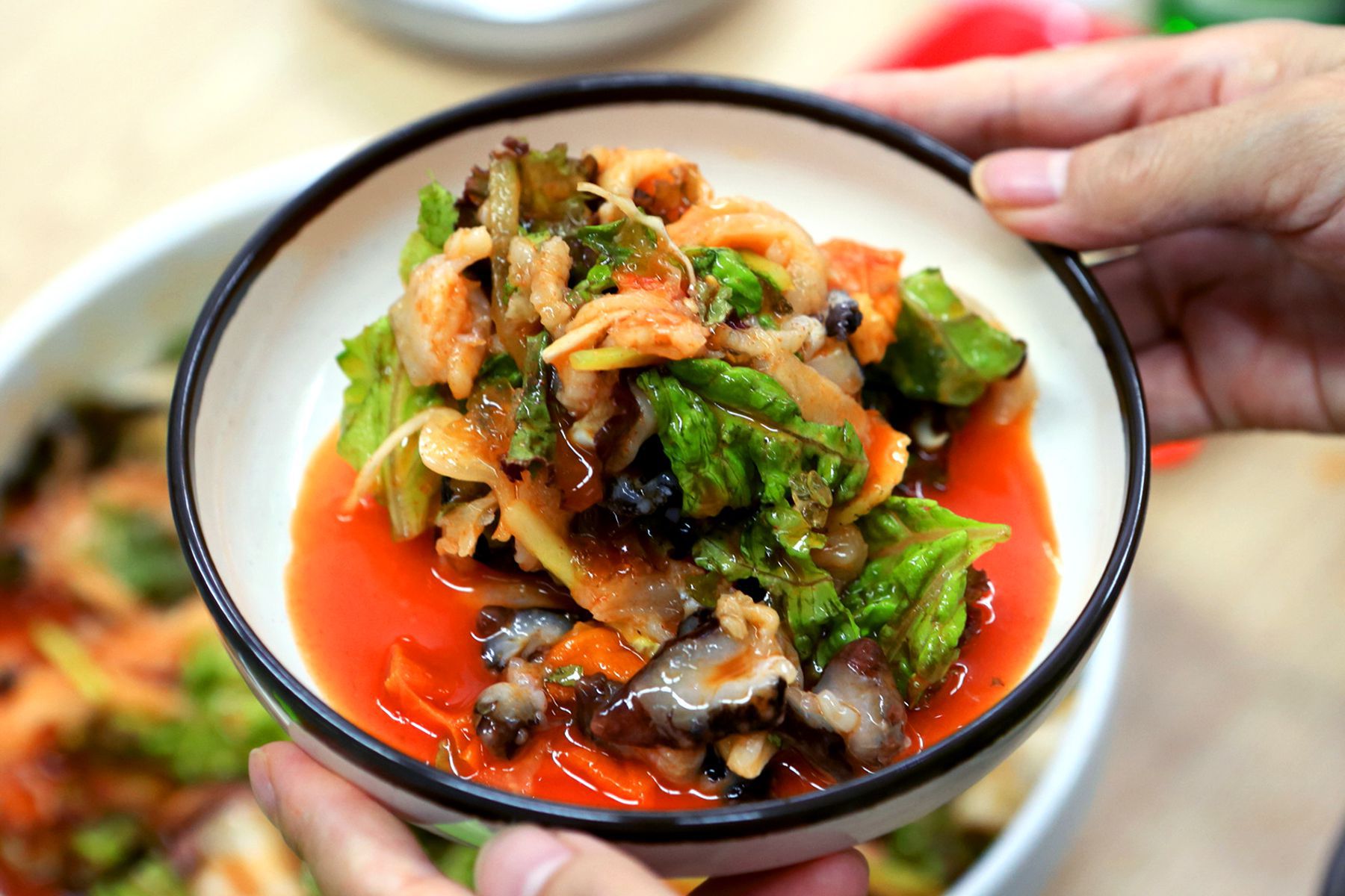 고소하고 식감좋은 오징어를 맛깔 스런양념과 신선한 채소와 함께 슥삭슥삭 비벼 뛰어난 식감과 풍미를 느껴볼 수 있습니다 .