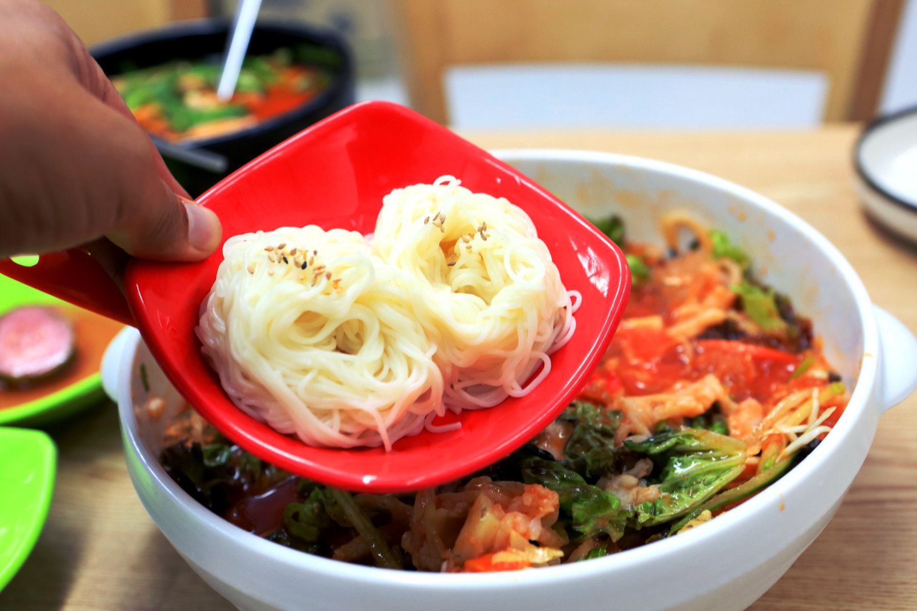한눈에도 신선함이 돋보이는 해산물을 탱글탱글 잘 삶아진 소면과 같이 드셔보신다면