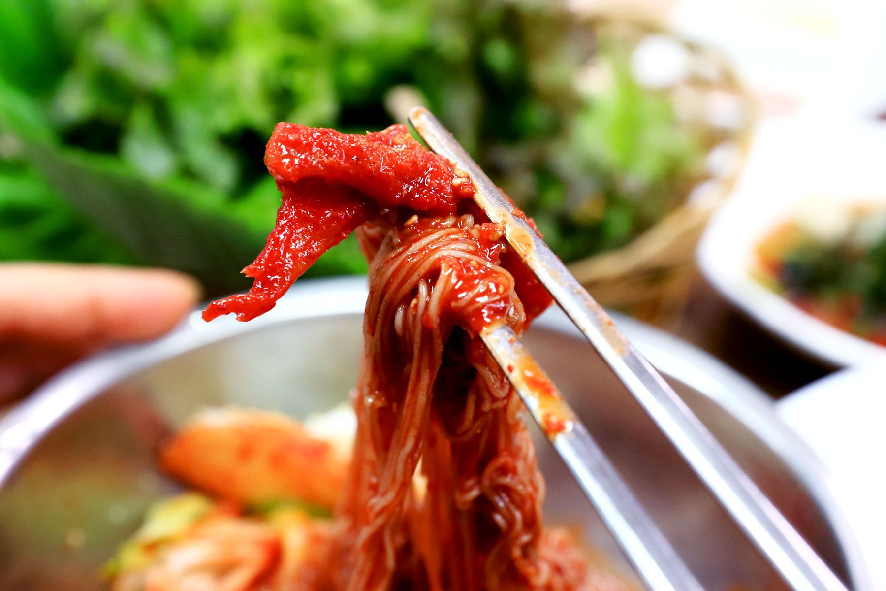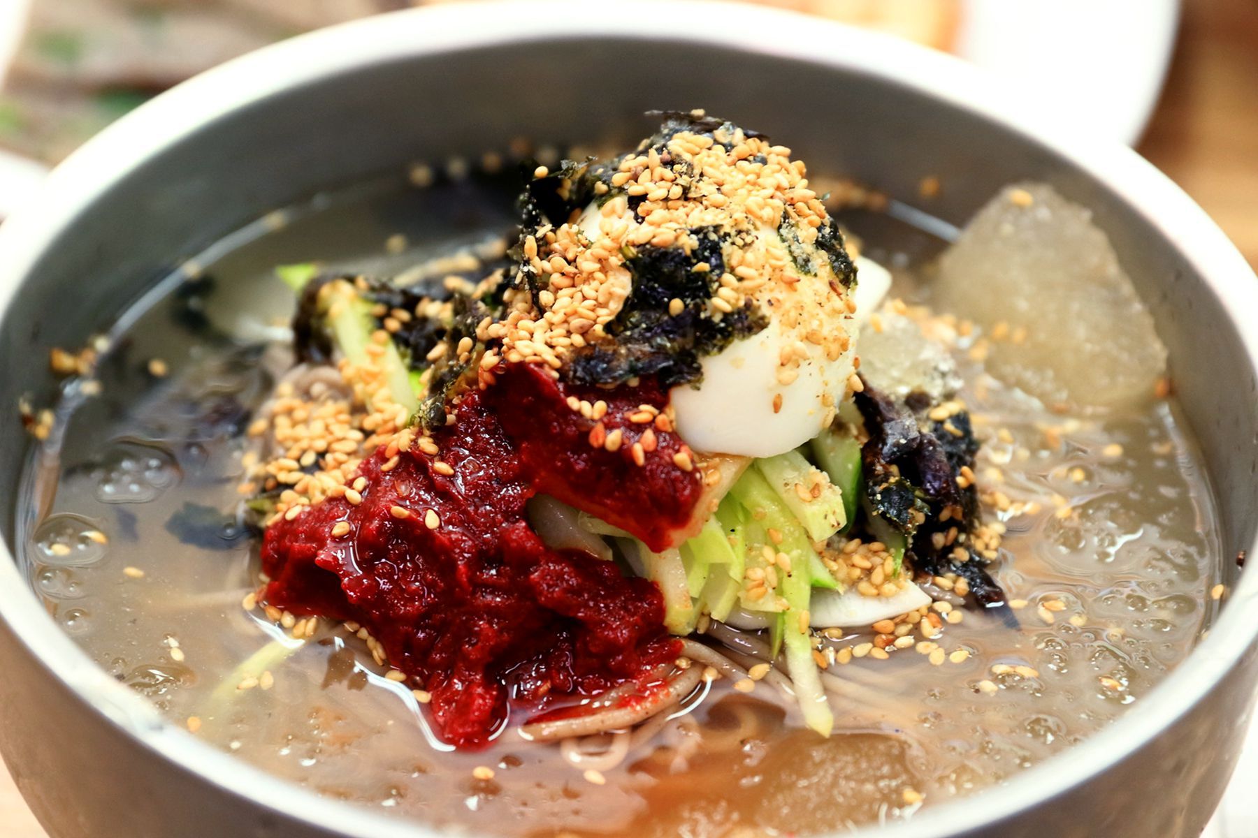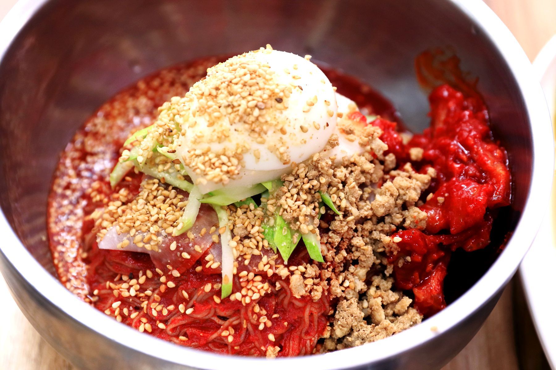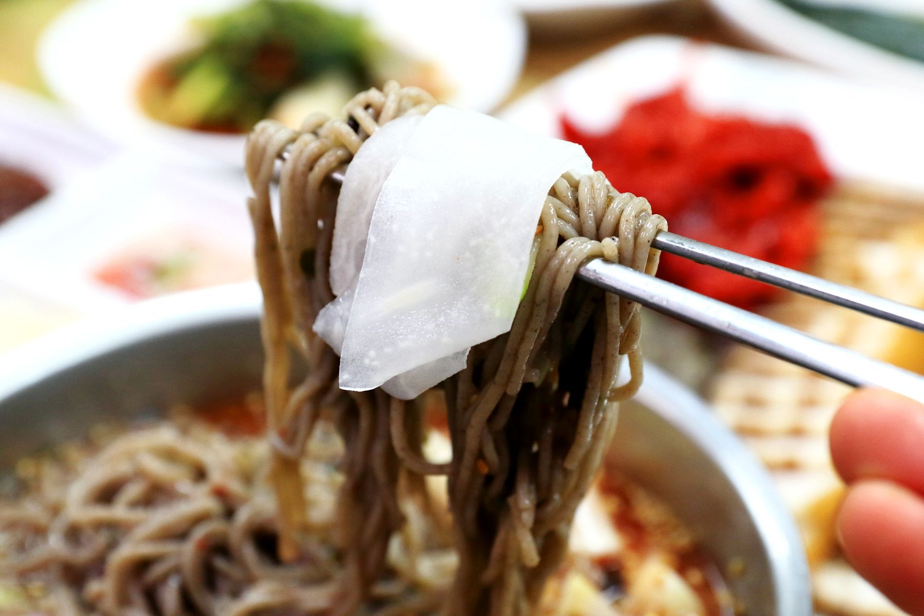 강원도 메밀을 사용하여 특제소스와 함께 비벼먹는 비빔 막국수와