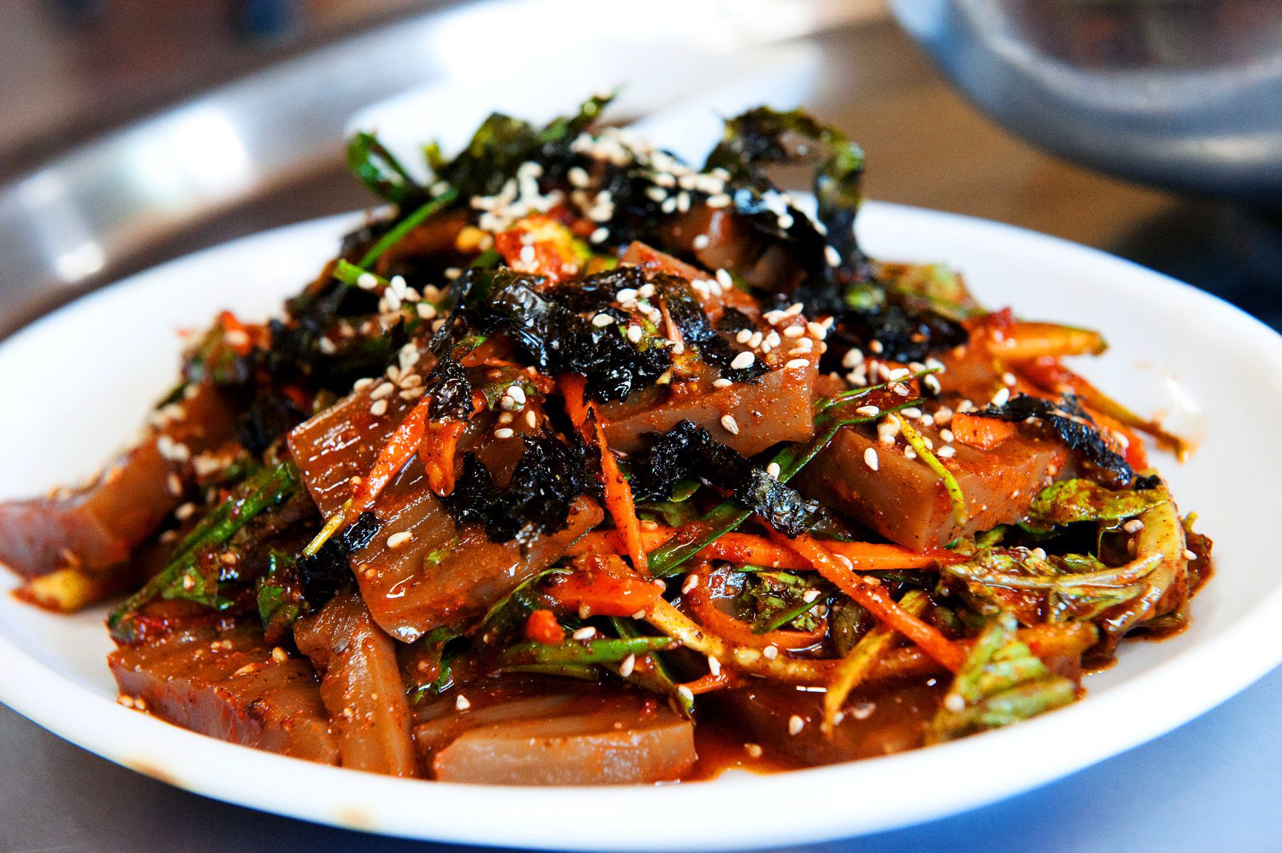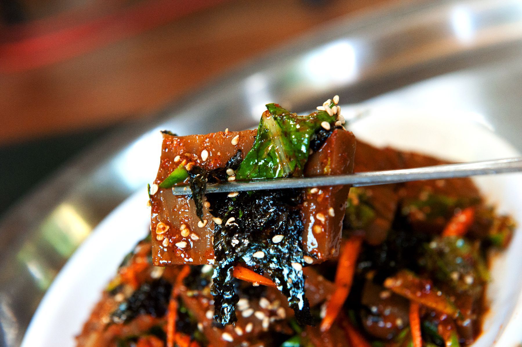 맛있는 비법 양념으로 버무려 밥반찬으로도 안주로도 좋은 도토리묵 입니다.