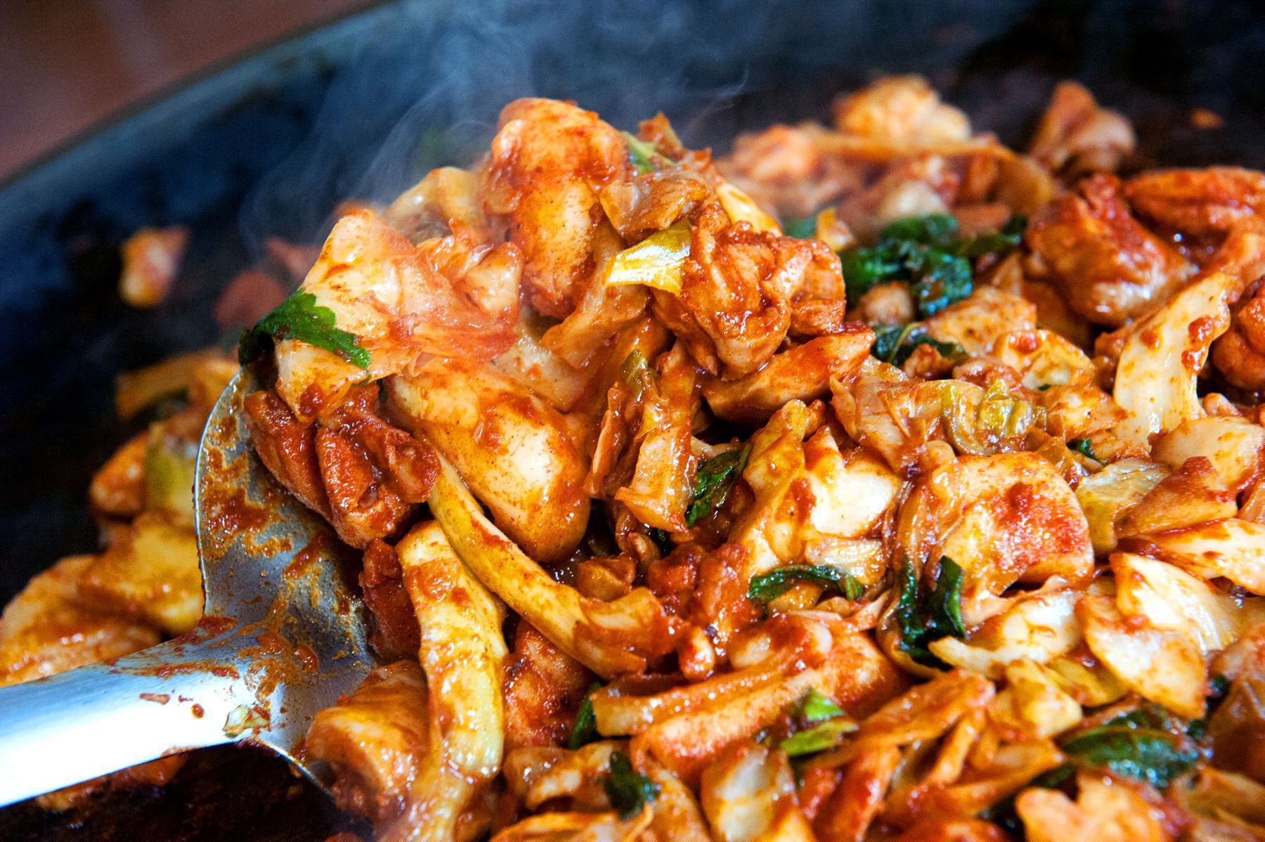 맛있는 양념과 부드러운 닭고기, 그리고 푸짐한 양을 자랑하는 '닭갈비' 입니다.