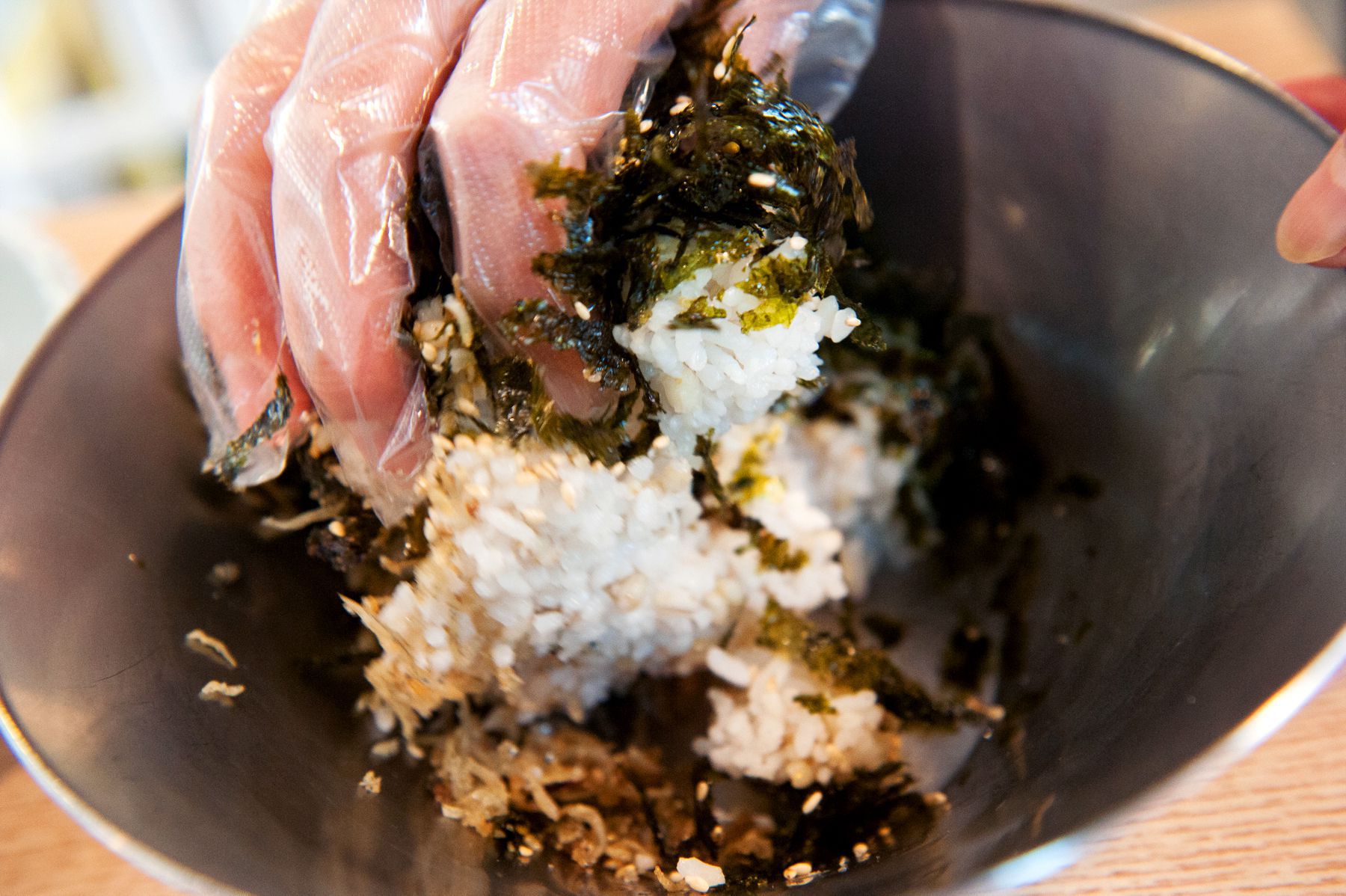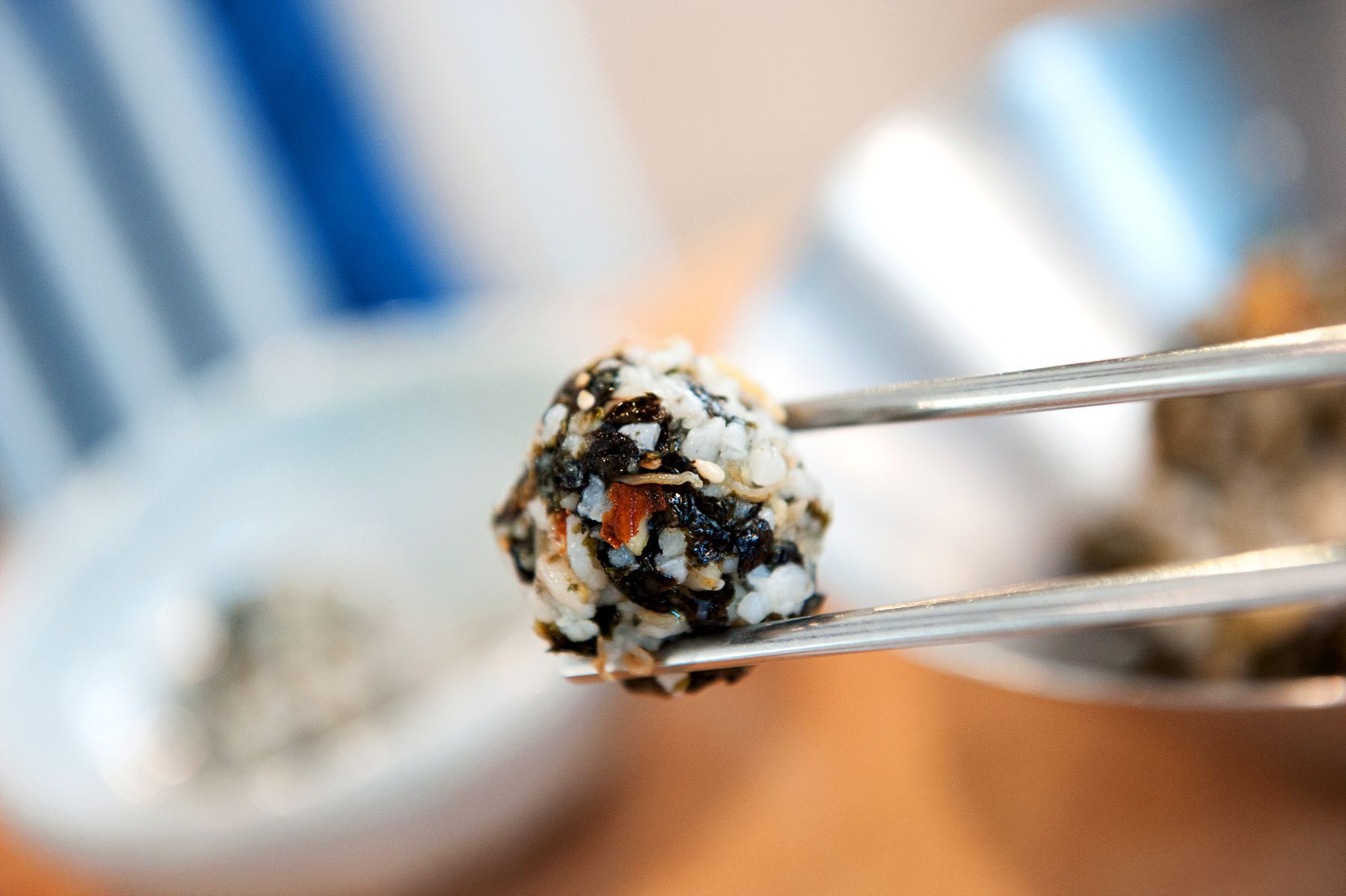아이들도 직접 만들어 먹을 수 있어서 좋아하는 주먹밥은 동글동글 말아서 드시면 고소하고 맛있습니다.