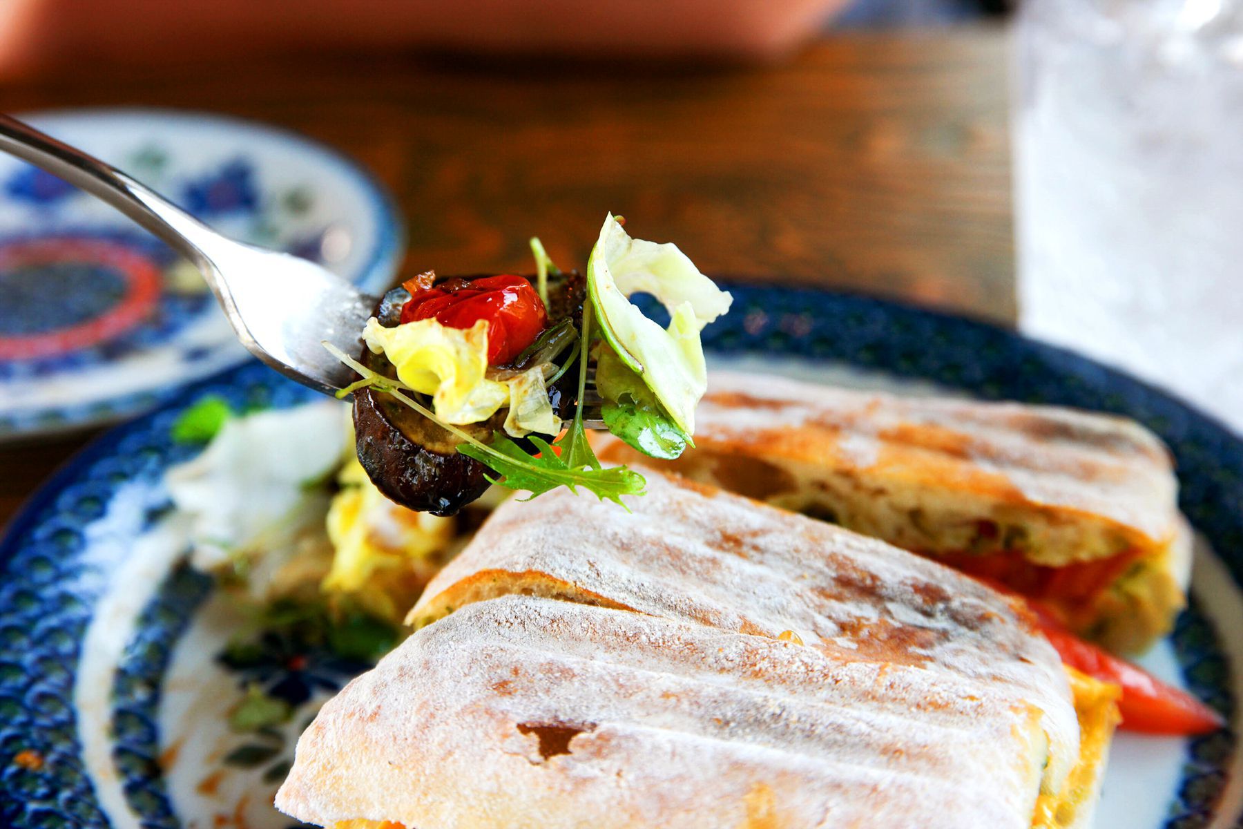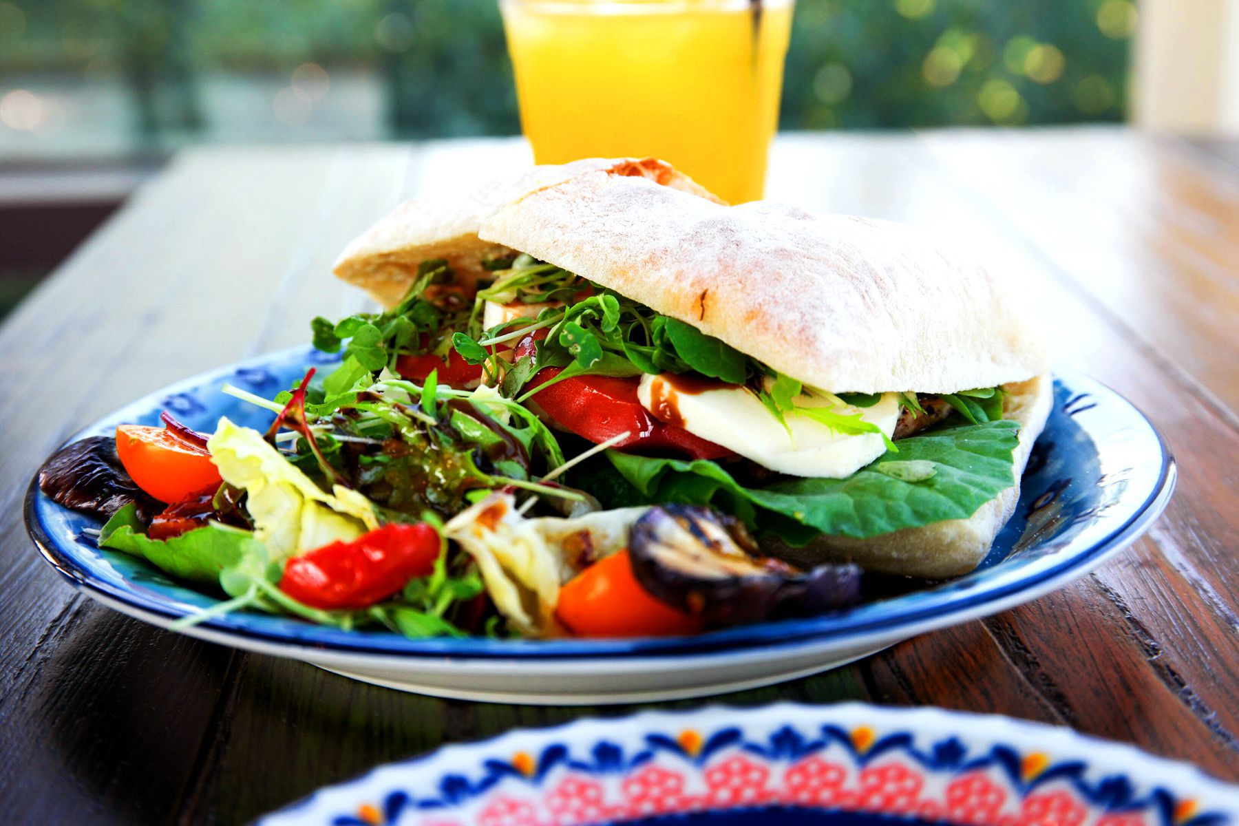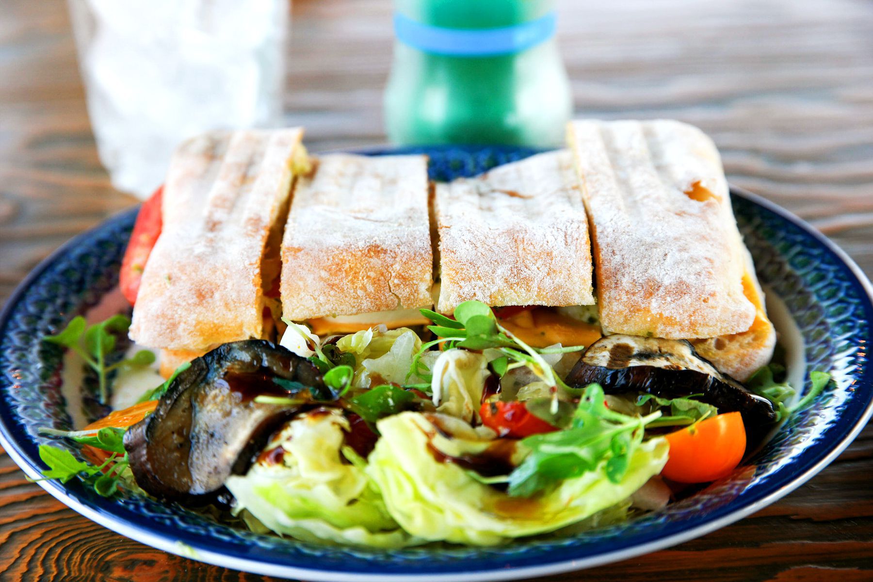 신선한 토마토와 모짜렐라 치즈가 들어간 토마토 모짜렐라 파니니는