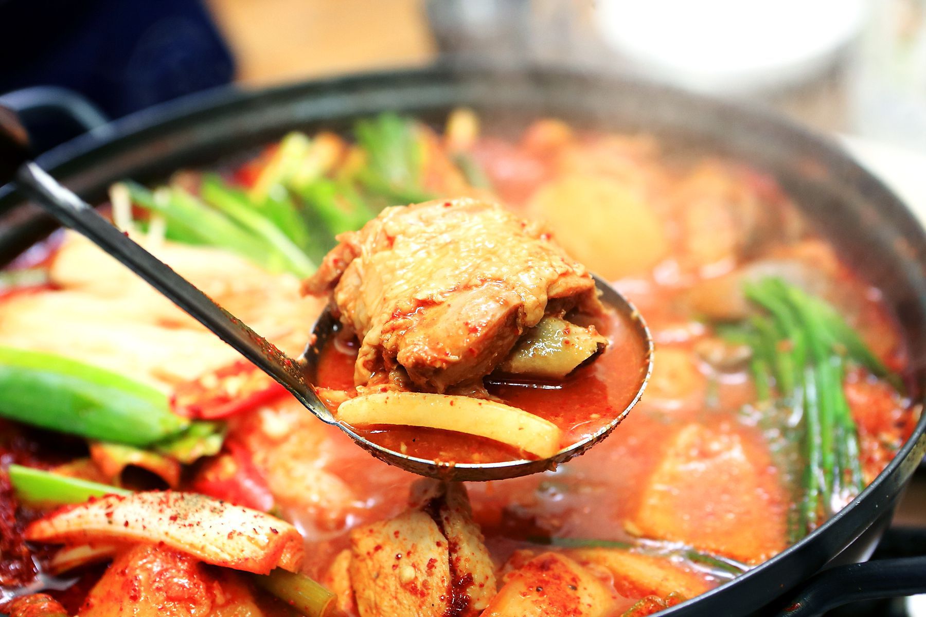 통으로 들어간 감자와 함께 닭고기살을 발라 양념을 넣어 슥슥 비벼 먹으면 정말 밥도둑이 따로 없는 메뉴입니다.