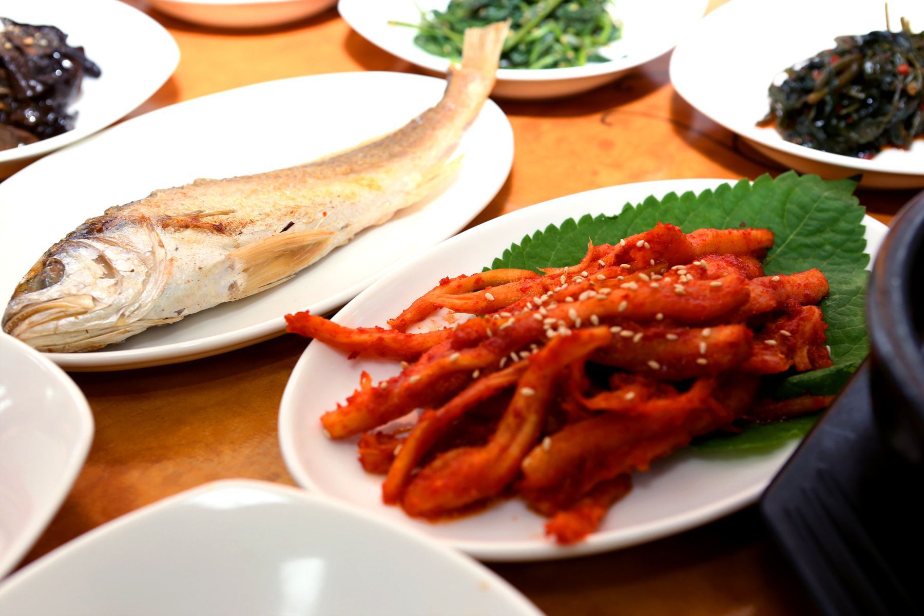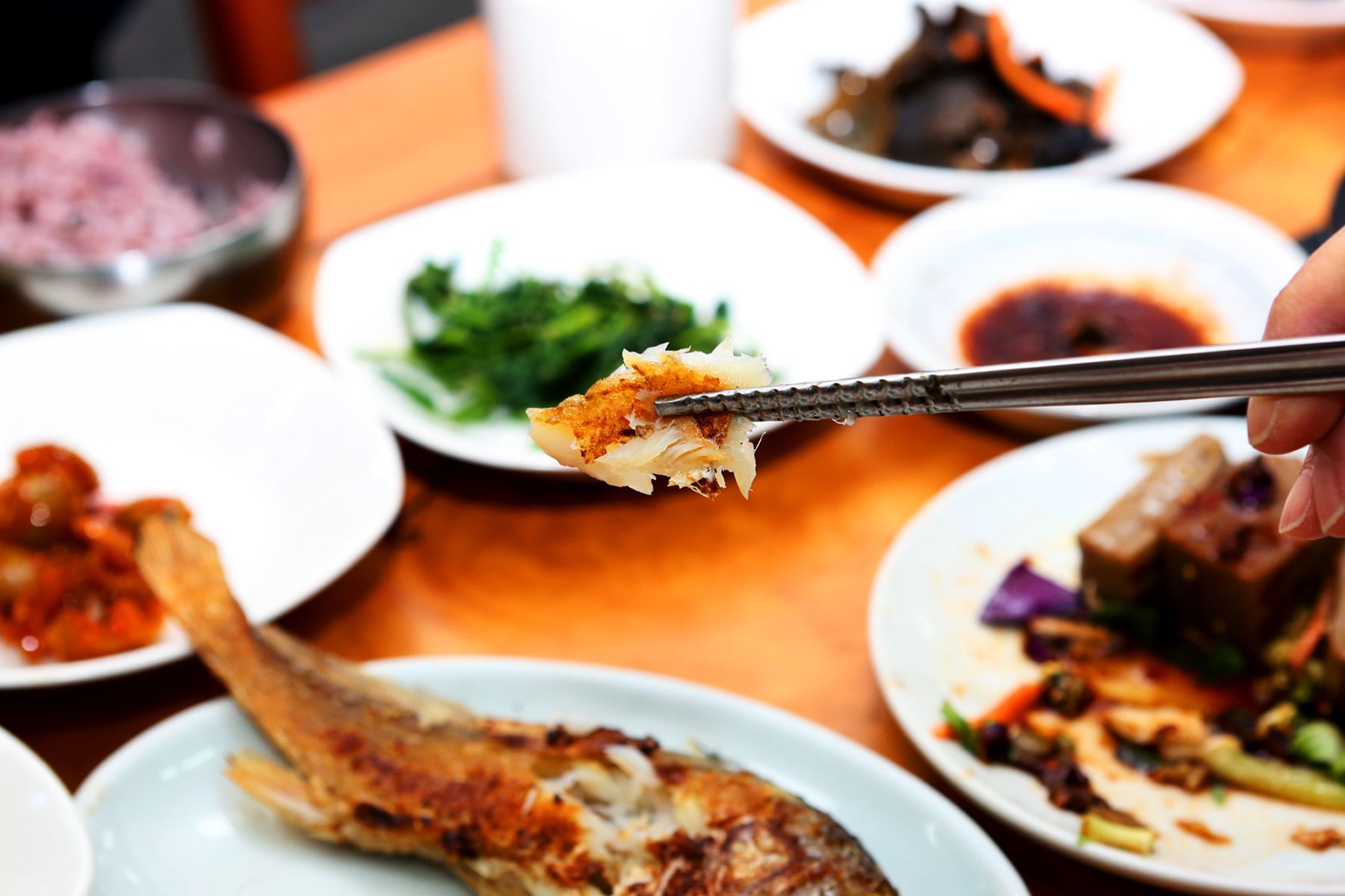 잘 구워진 바삭한 생선구이, 그외 이곳 지역에서 나는 다양한 나물반찬들과 어울려 함께 드시면