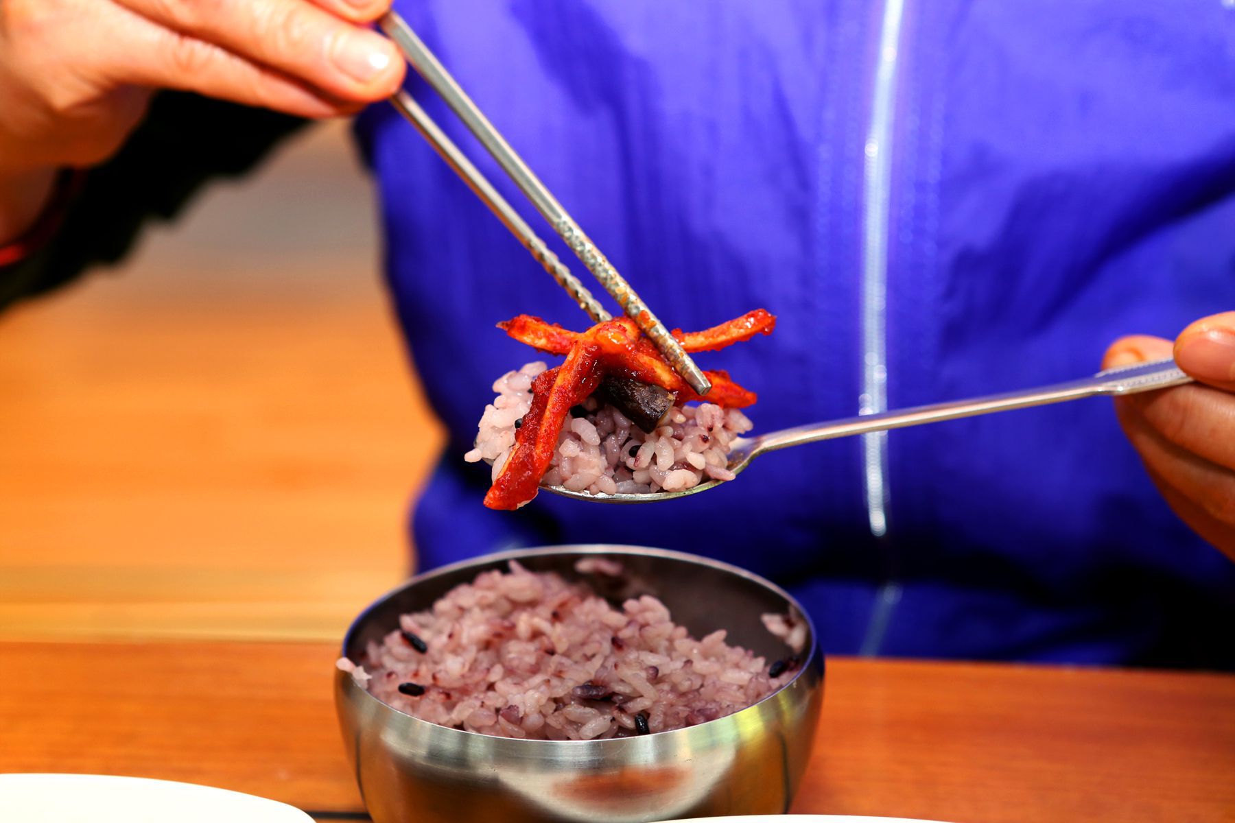 갓 지은 건강한 흑미밥에 쌉사름하면서 양념이 쏙쏙 잘베어 부드러운 더덕구이와 함께 한 술크게 떠서 드셔도 맛이 좋으며