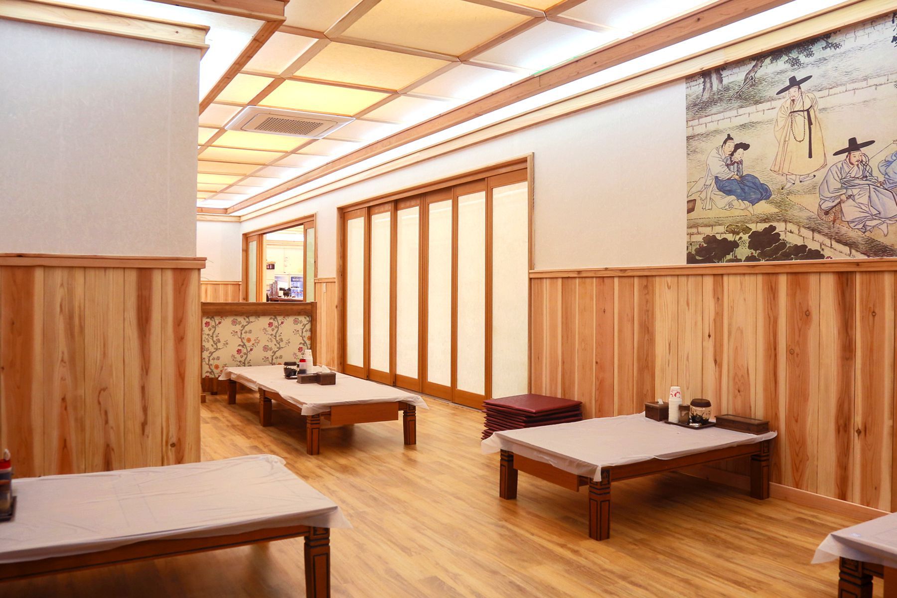 테이블은 16개로 연회석도 따로 마련되어 있어 150명이상의 단체손님들도 편하게 식사를 즐기실 수 있는 음식점으로