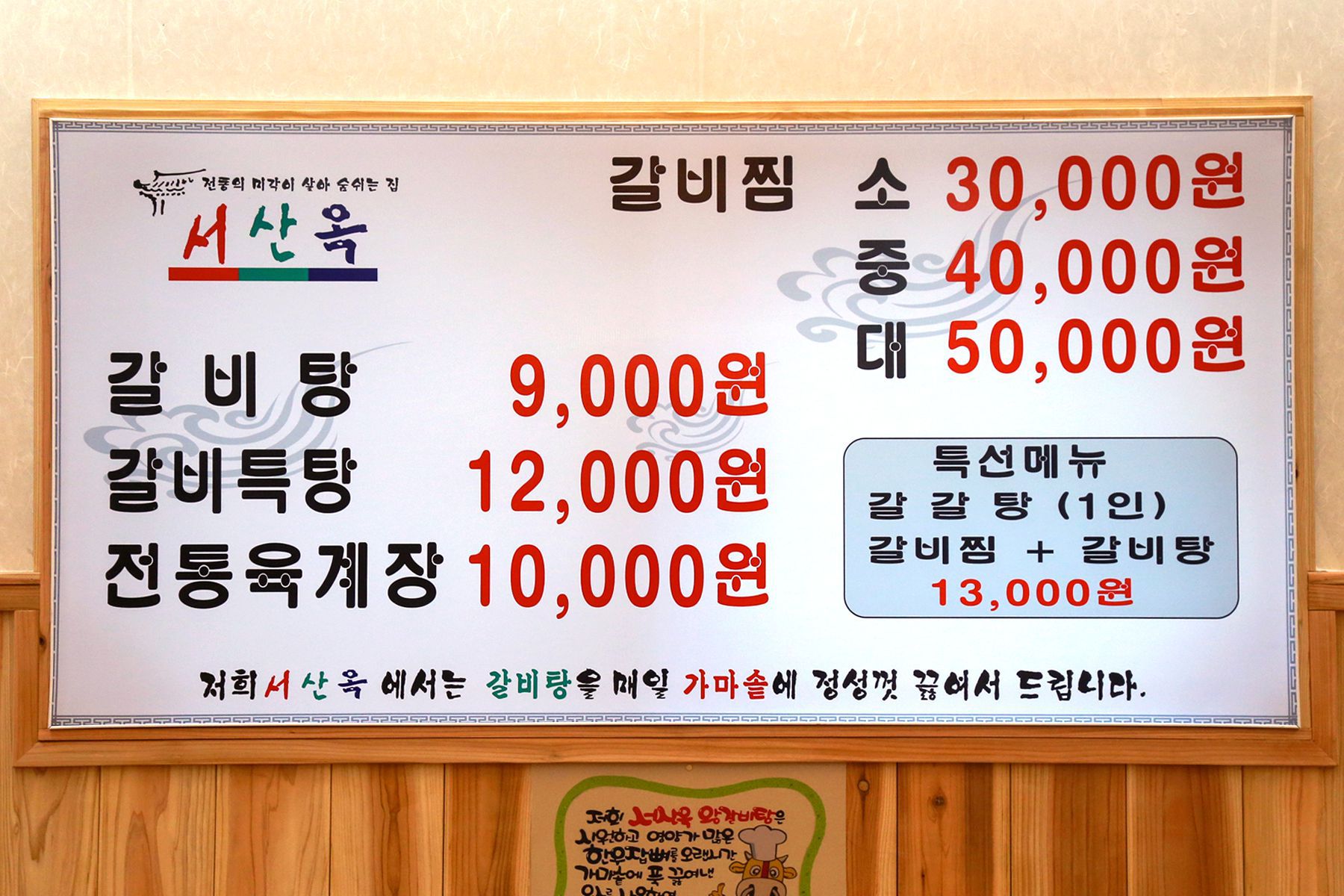 이곳은 갈비탕, 갈비특탕, 전통육개장, 갈비찜등 다양한 메뉴가 준비되어 있어서