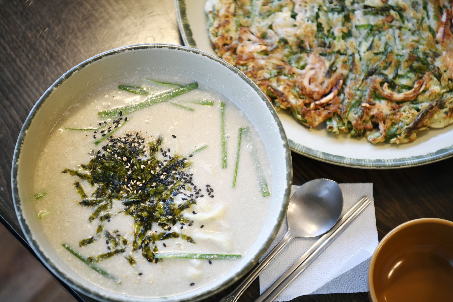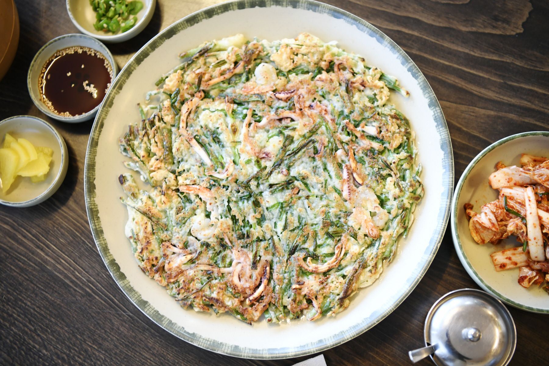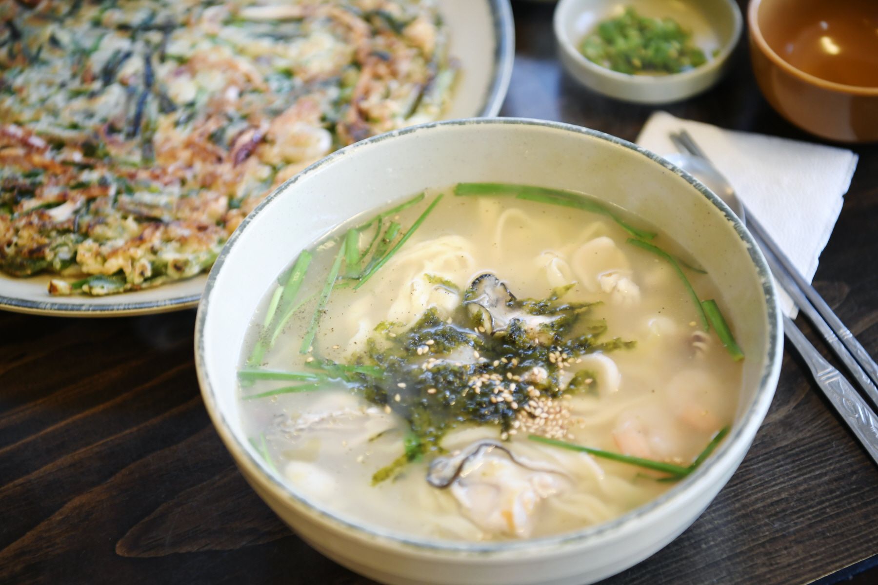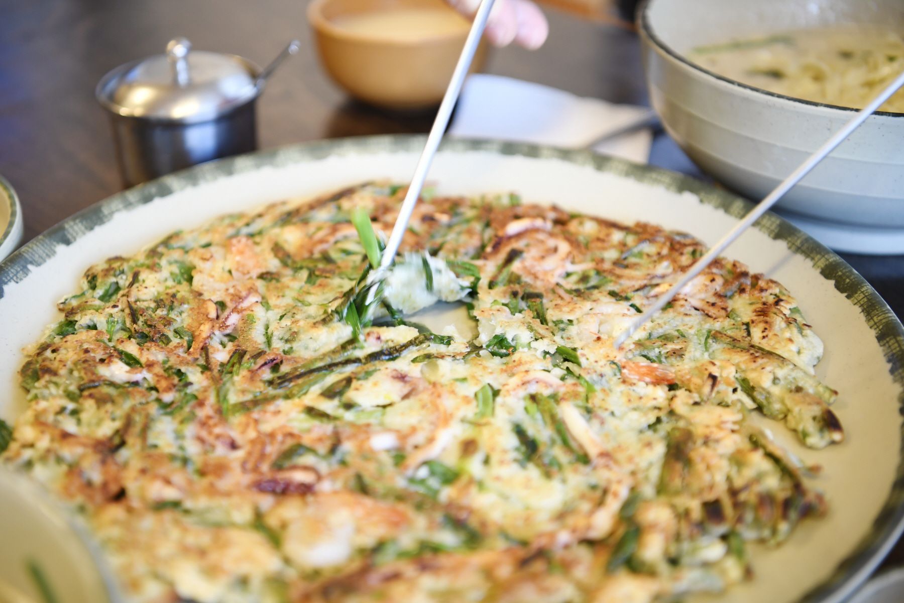칼국수와 함께 곁들여 먹기 좋은 '파전'입니다.