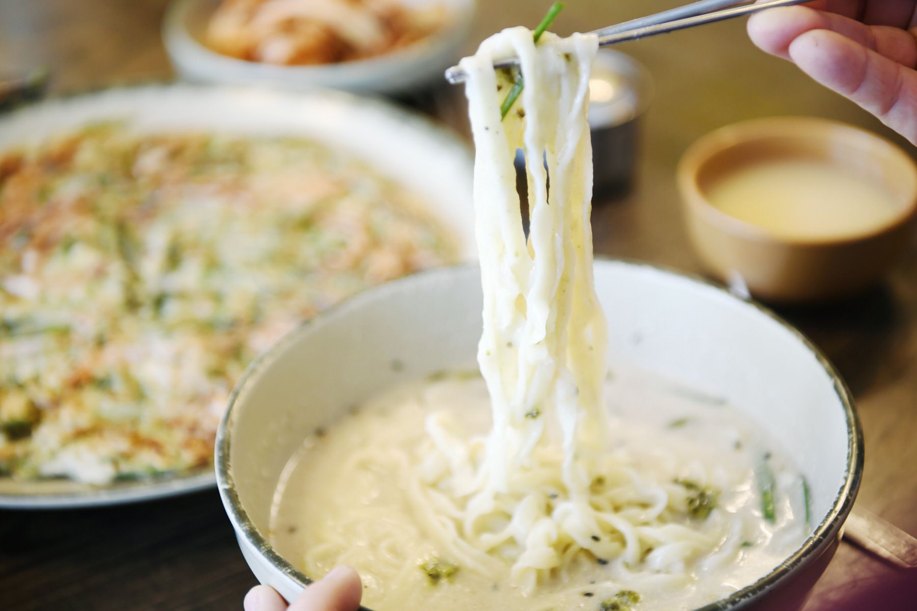 만나볼수 있는 열무국수,함께 곁들여 먹기좋은 찐만두와 파전 메뉴가 준비되어 있습니다.