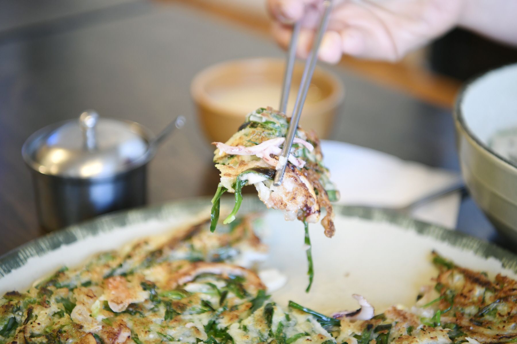두툼하게 부쳐지는 파전은 푸짐해서 안주와 반찬으로도 좋습니다.