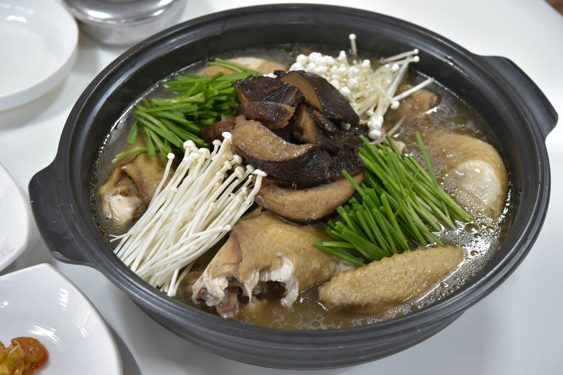 능이버섯이 듬뿍 올려져있는 백숙을 맛보시면 4계절 내내 덥고 추운 변덕진 날씨도 거뜬히 이겨낼 수 있는