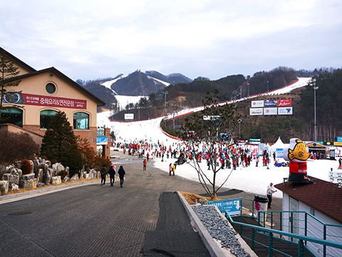 매력적인 슬로프가 있는 스키장
