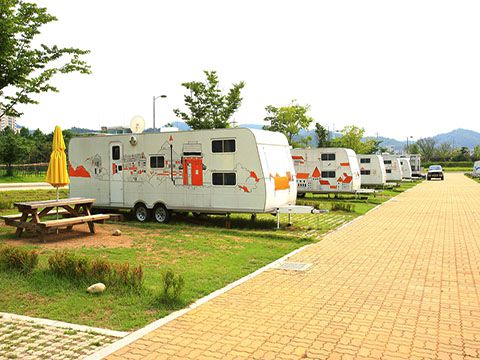 이곳은 캠퍼를 위한 오토캠핑장과 카라반 사이트 그리고 고정된 캠핑카와 트레일러를 이용한 모빌홈 등의 숙박시설을 갖추고 있습니다