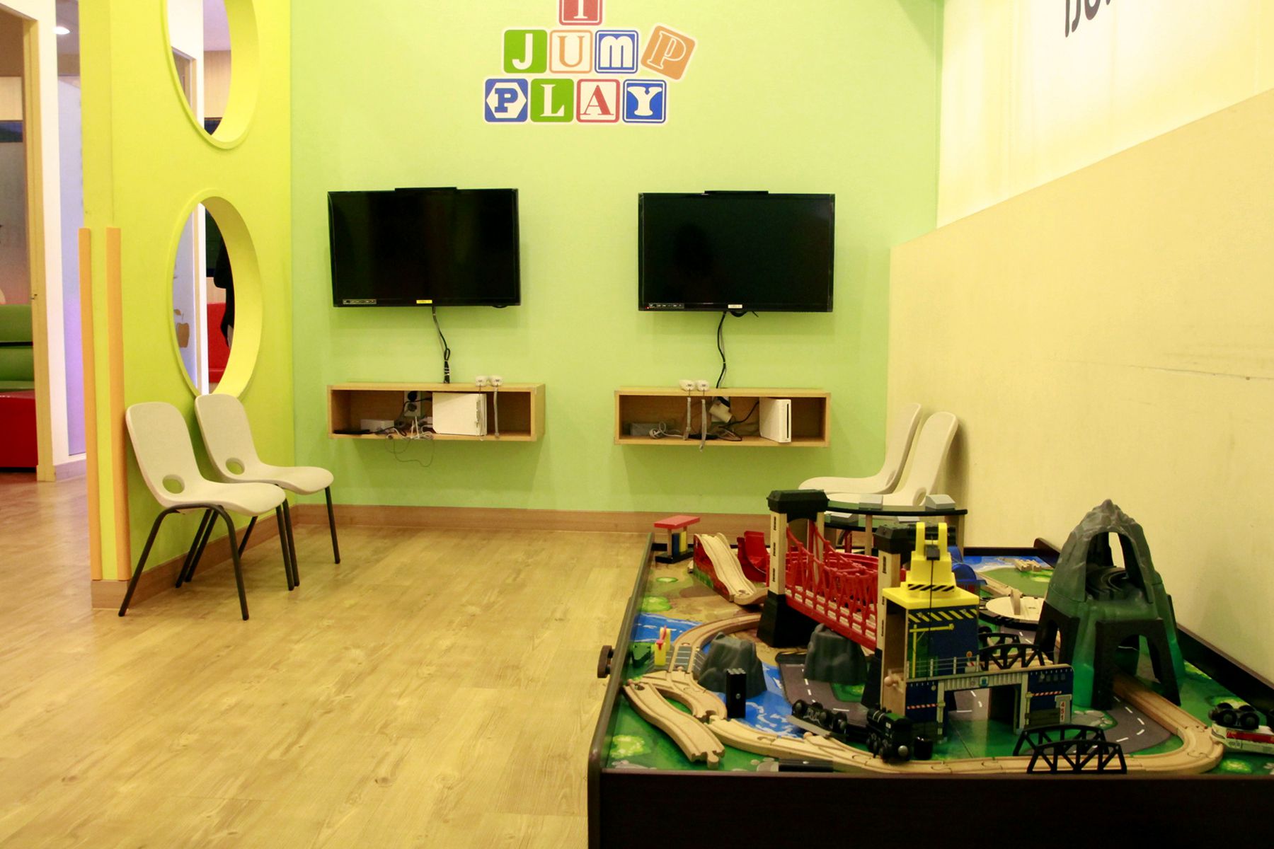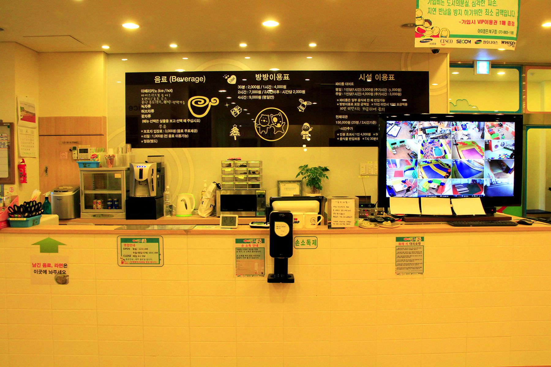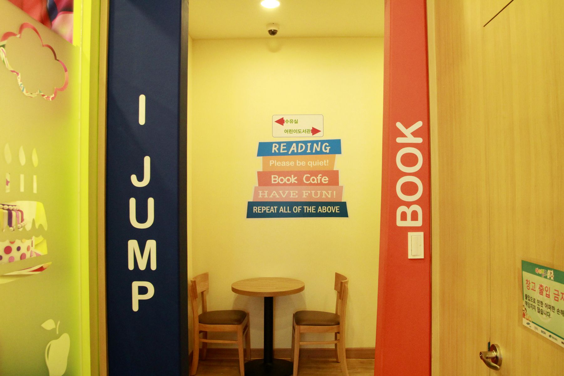 아이점프는 130평의 공간에 쥬니어방, 유아방, 편백존, 게임존, 미니복층, 파티룸, 수유실, 북카페, 맘스카페로 구성되어 있어