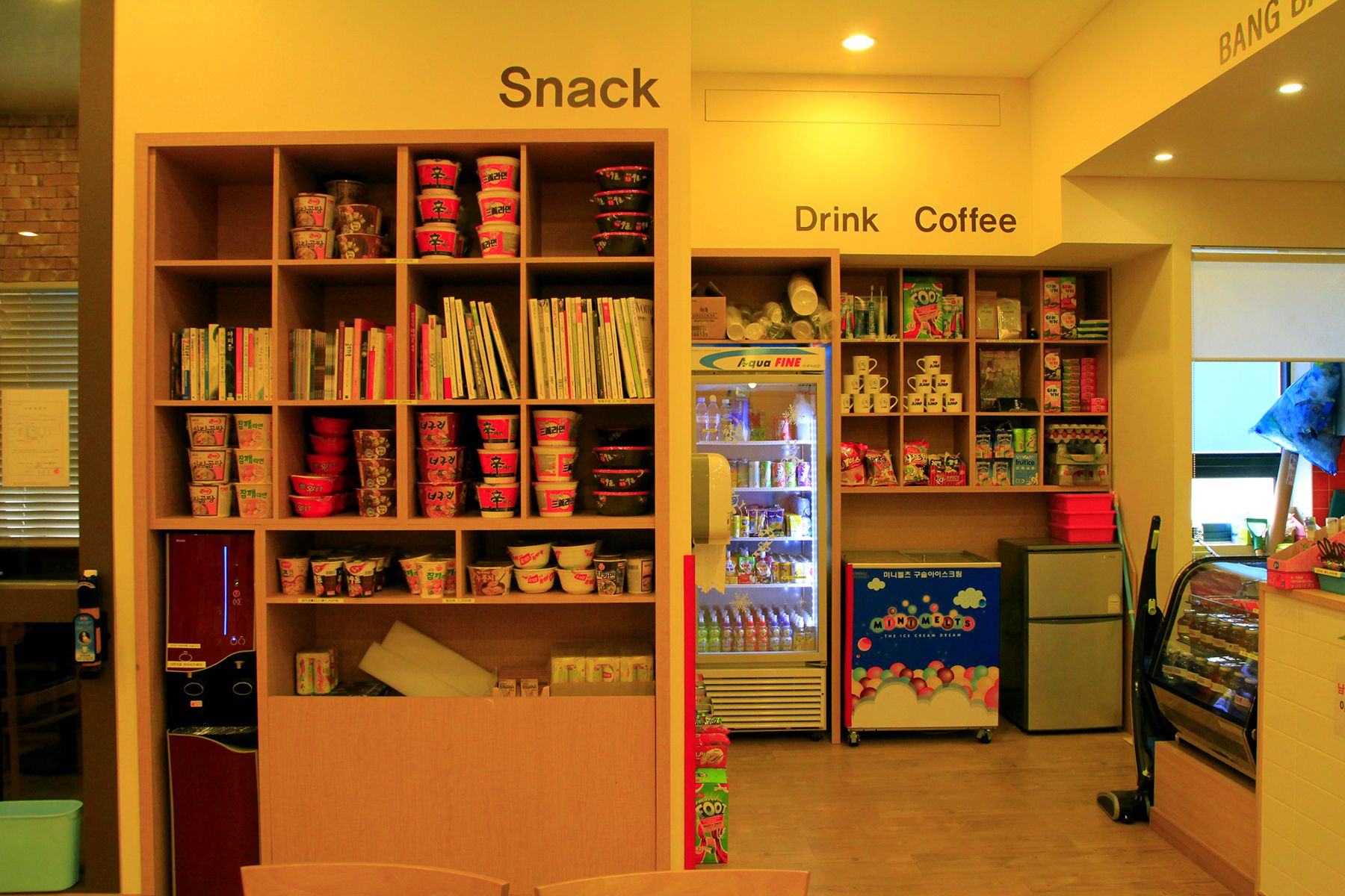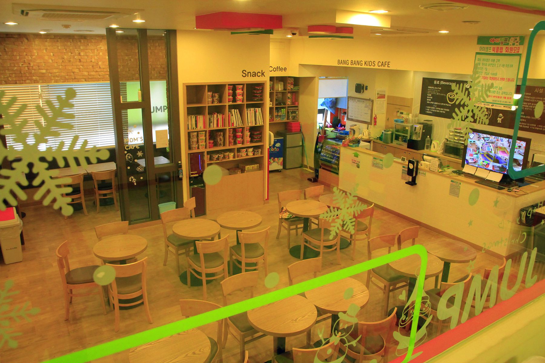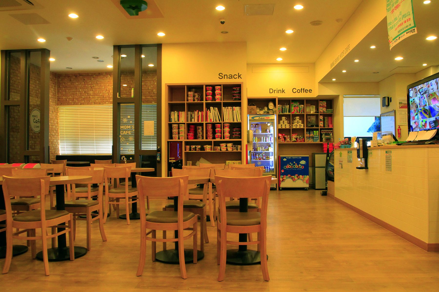 커피와 음료, 간단한 간식을 먹을 수 있어 육아에 지친 엄마들에게 편안한 쉼터가 되어줍니다.