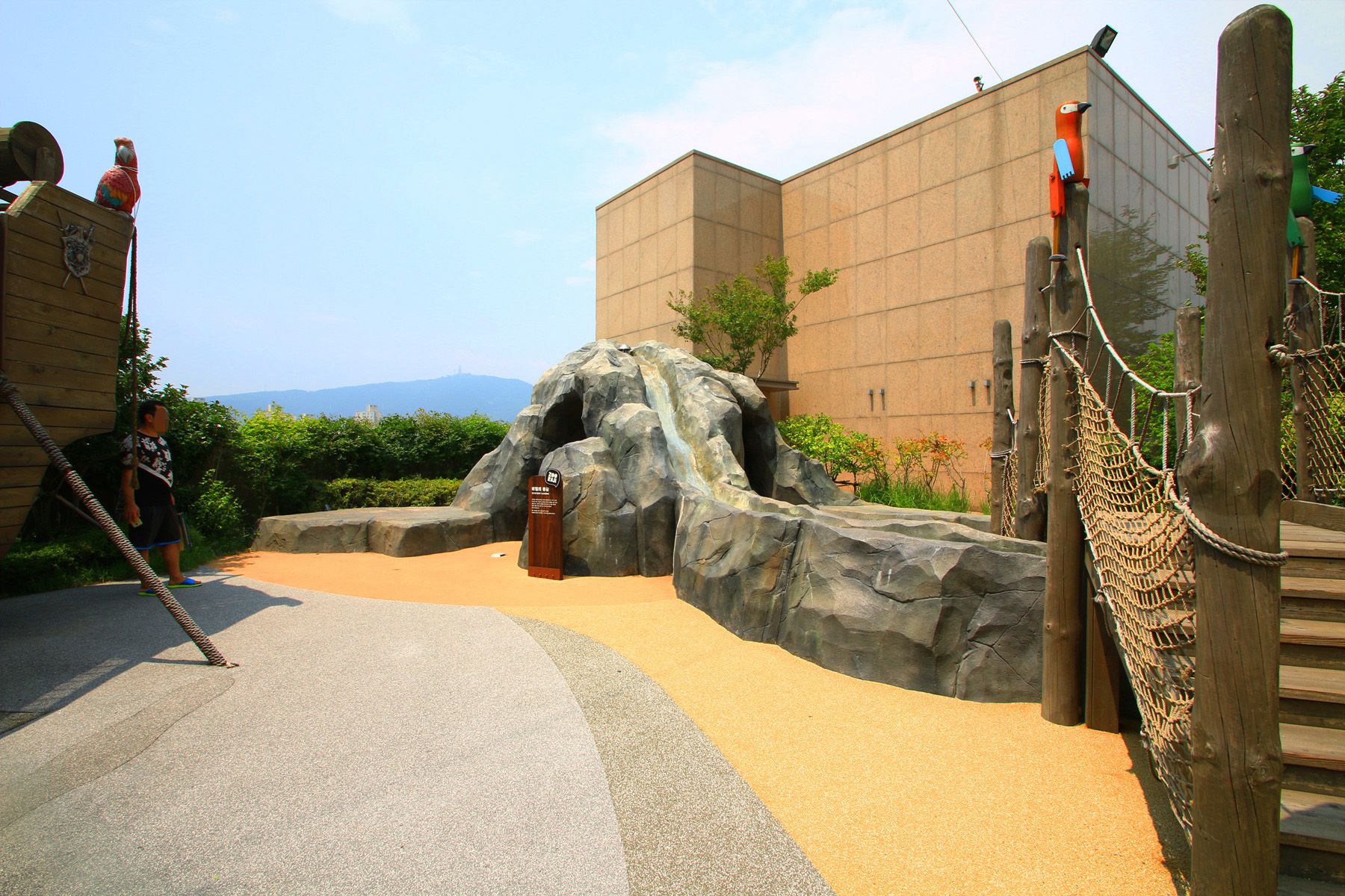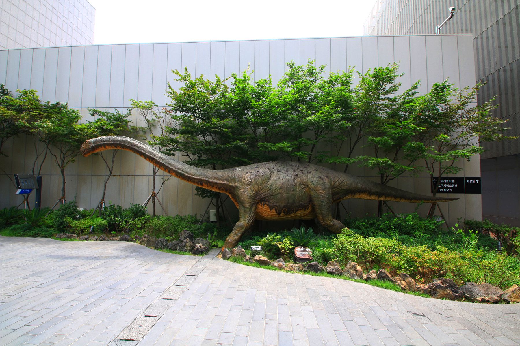 9층 옥상 정원에 설치되어져 있는 주라지공원은 다양한 조형물과 함께 모형으로 된 공룡을 만날 수가 있는데요