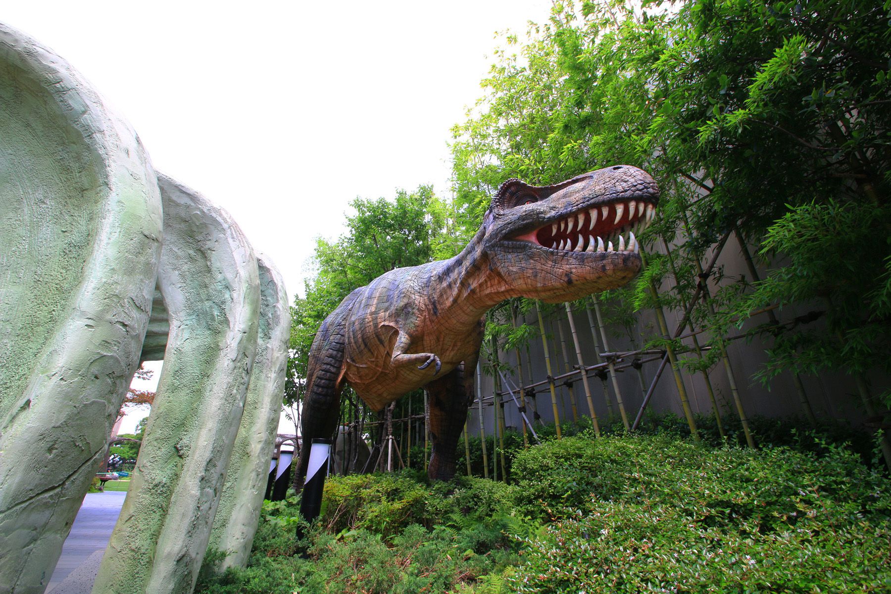 티라노사우스르를 비롯한 다양한 공룡의 모형들을 만날 수 있는 공룡의 땅, 그리고 열대 우림 속의 원시마을을