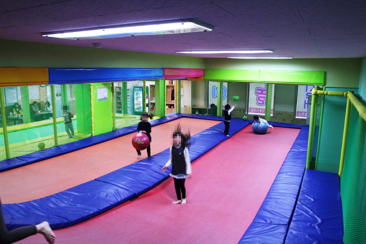 여기는 7세 이상의 아이들이 뛰어놀 수 있는 트렘펄린입니다.