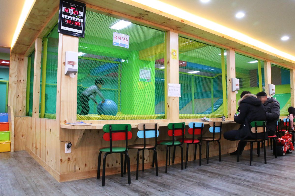 트램펄린 밖엔 부모님들이 아이들을 지켜볼 수 있는 공간이 마련이 되어 있어서