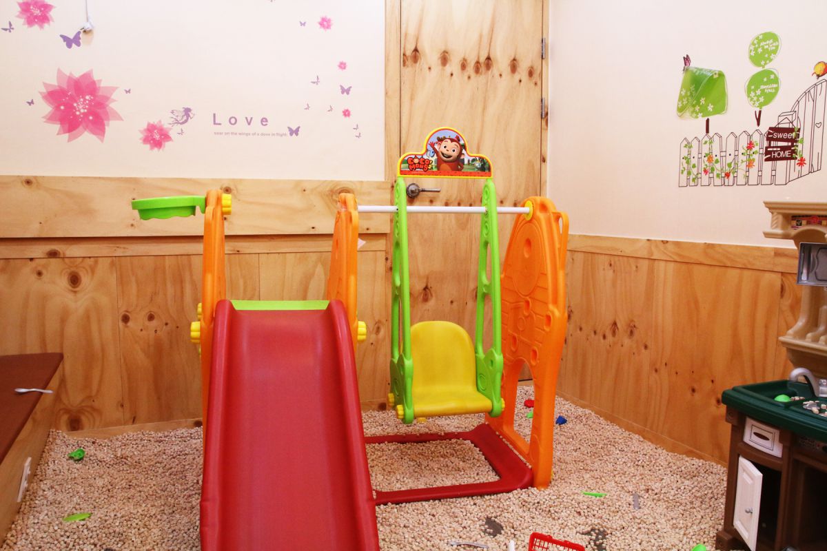 미끄럼틀, 소꿉놀이 등으로 시간 가는 줄 모르고 즐길 수 있는 점핑 타임 키즈존입니다.