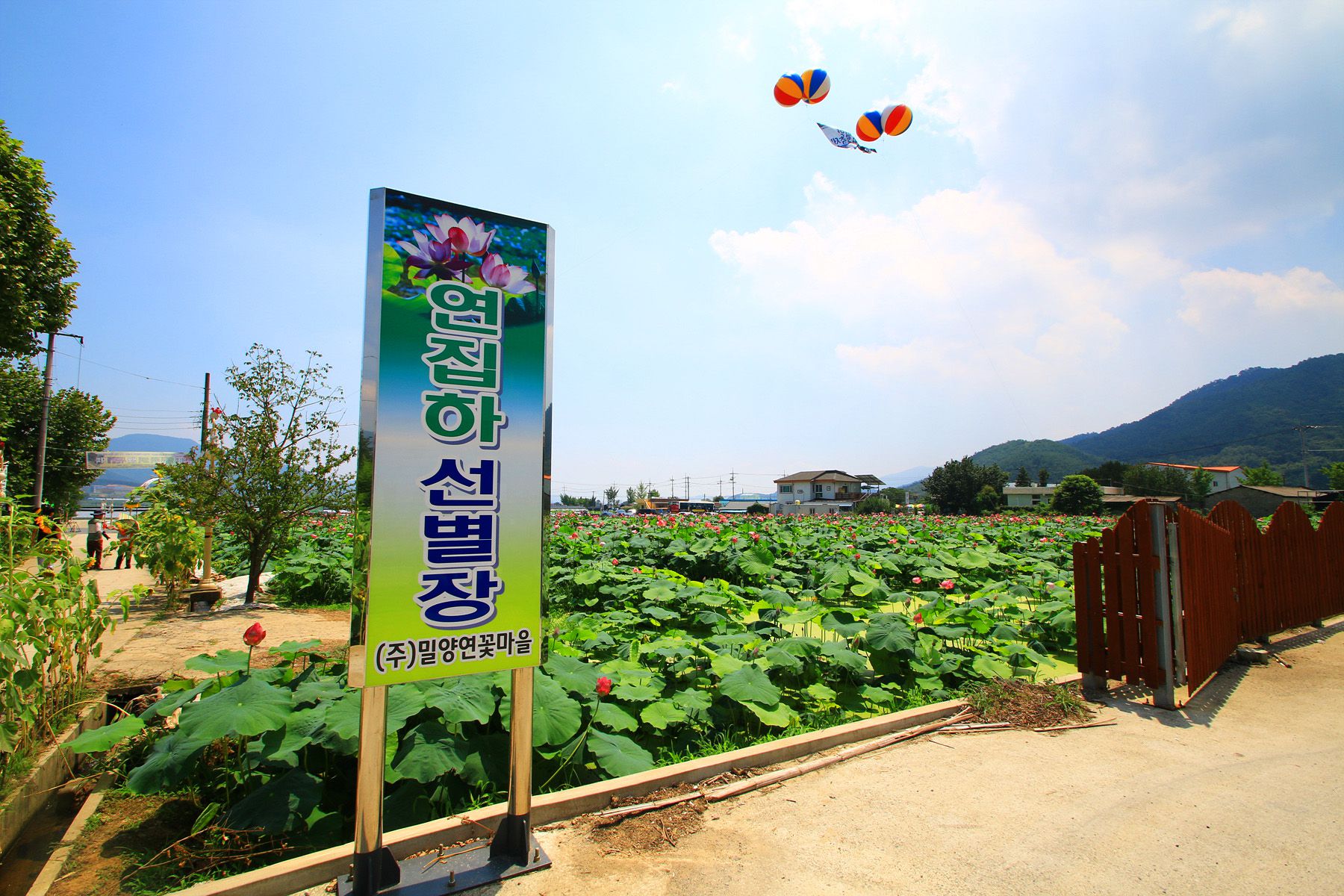 밀양 연극촌 바로 앞에 있는 연꽃단지인 연꽃세상 연화도는 3만평에 달하는 곳이 연잎과 연꽃으로 가득한 대규모 연꽃단지입니다.