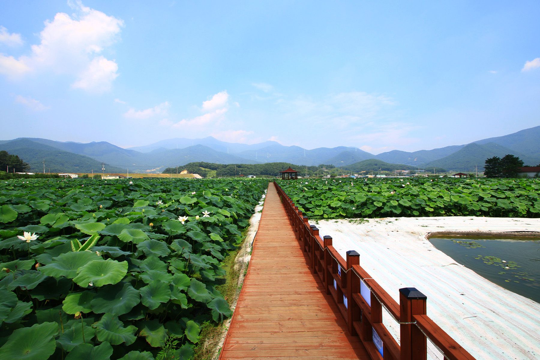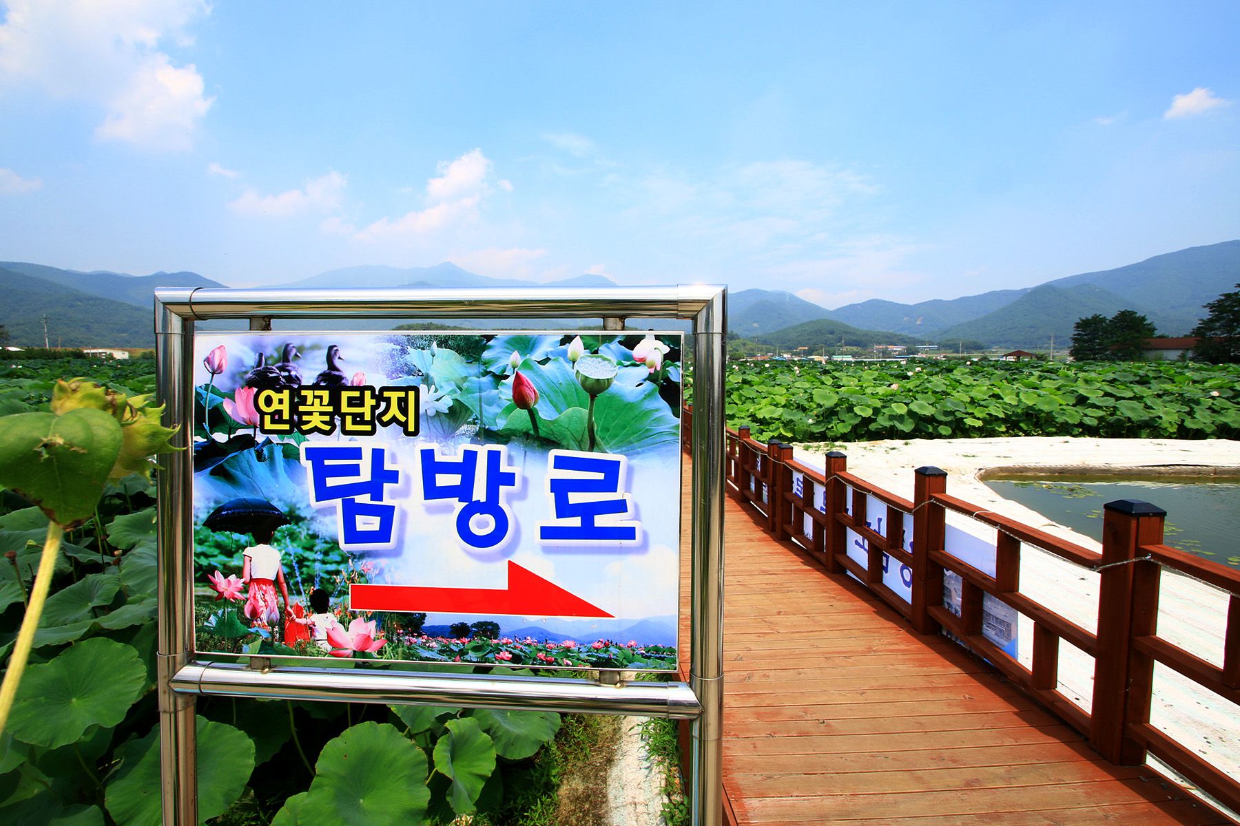 연꽃을 자세히 보려면 연꽃단지내에 조성된 탐방로를 걸으시면 좋습니다.