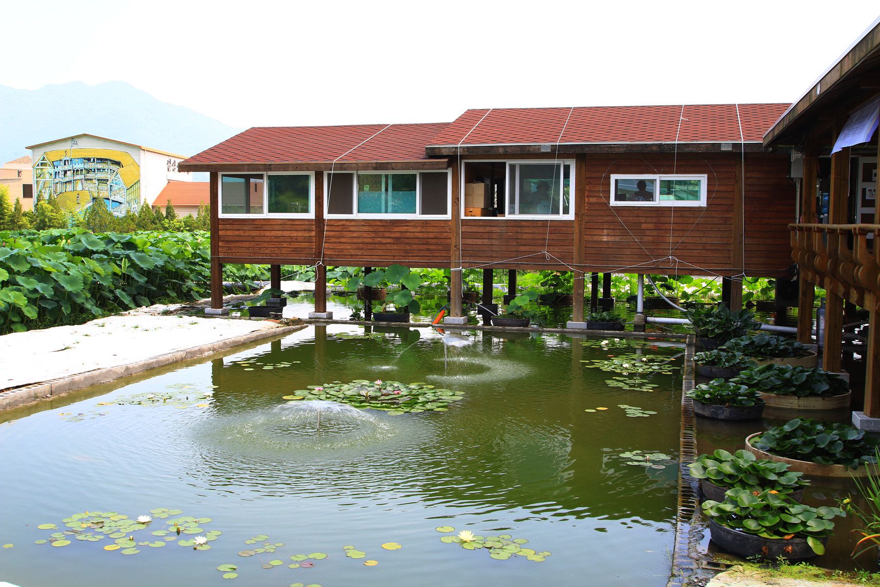 연못 위에 쉴 수 있는 쉼터도 마련되어 있습니다.