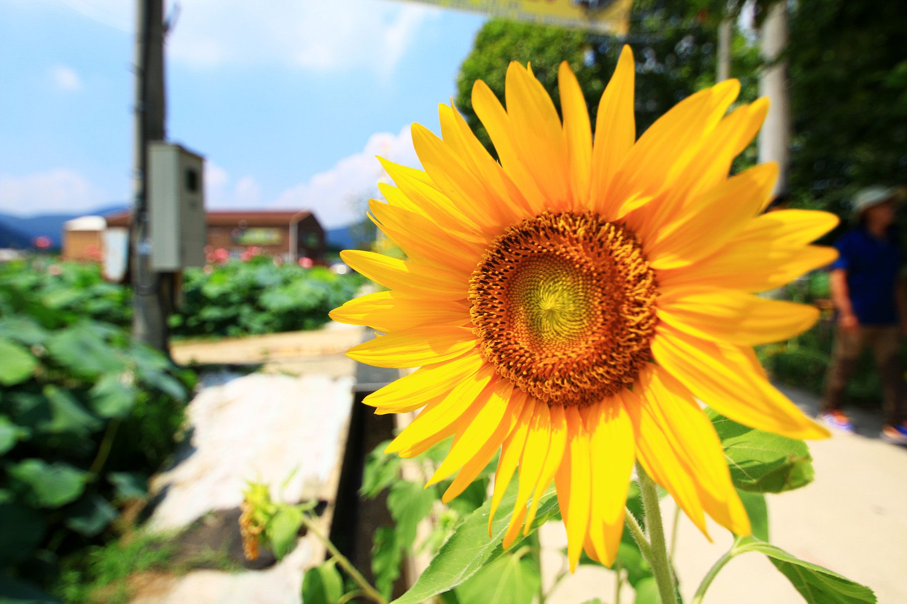 길가에 핀 해바라기도 연꽃에게 질세라 노란색의 화려함을 드러내는 것 같네요.