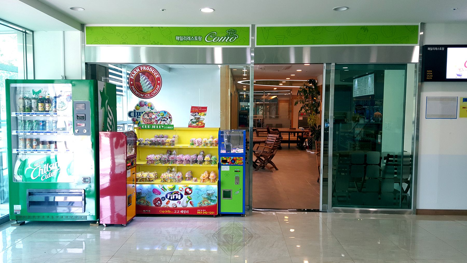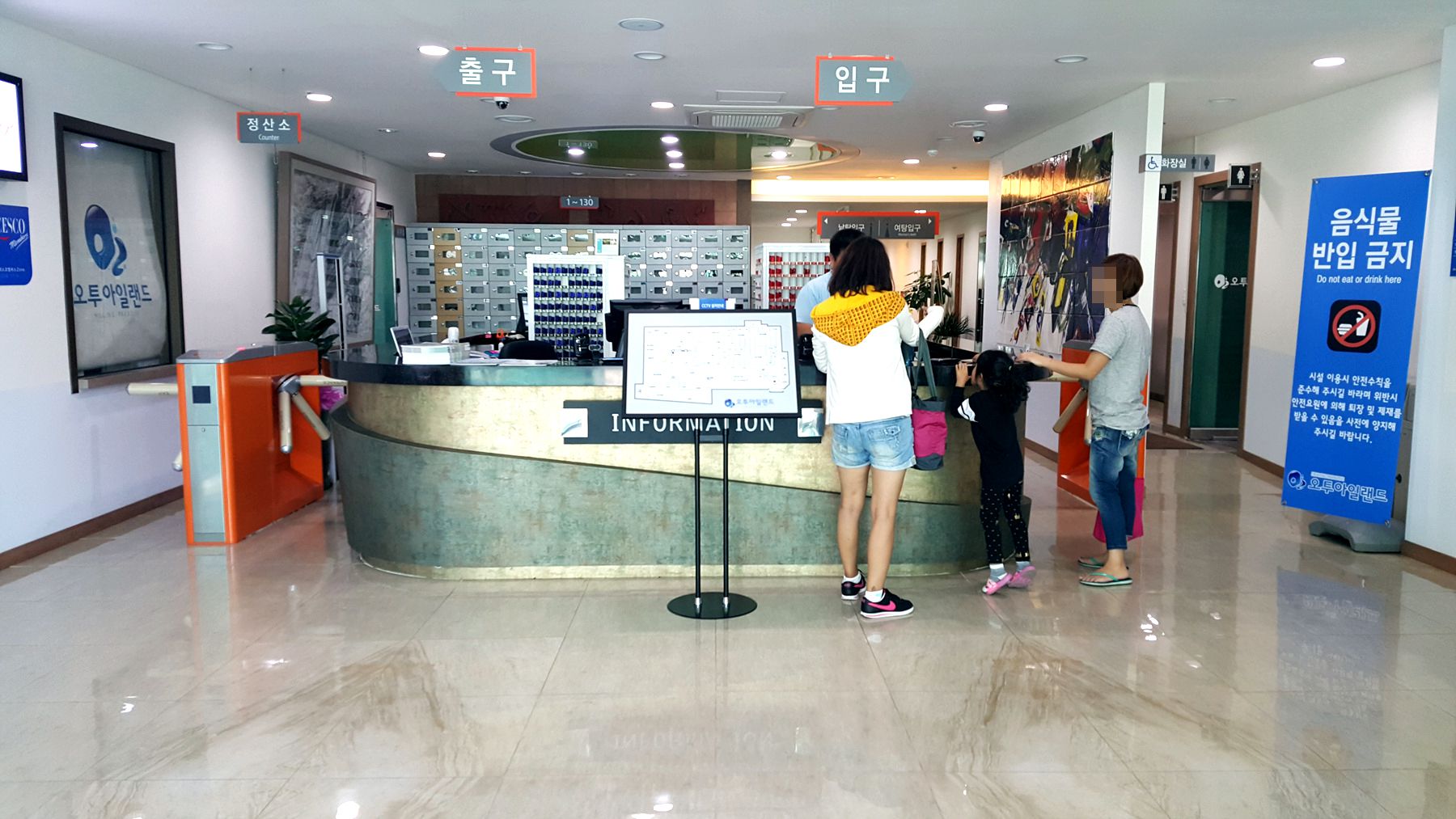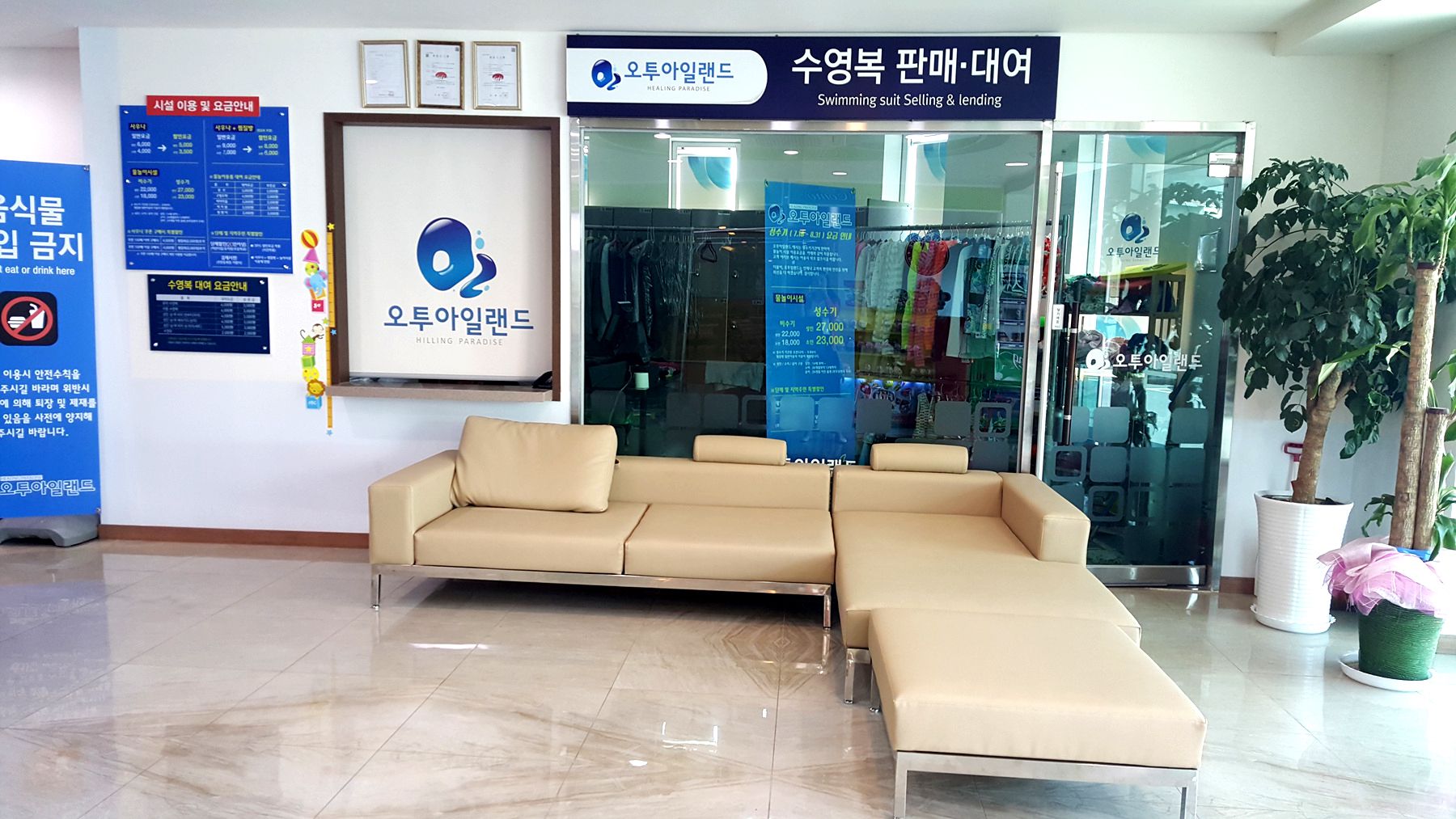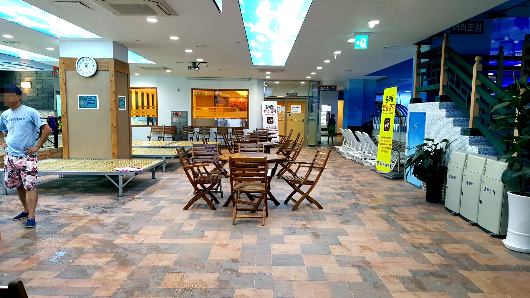 입구쪽에는 메인 프론트와 수영복판매 및 대여소,워터파크와 이어지는 패밀리레스토랑 입구가