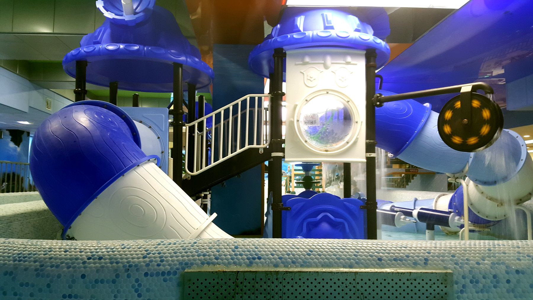 미끄럼틀과 슬라이드 등 다양한 놀이거리가 마련되어 있는 놀이풀장은