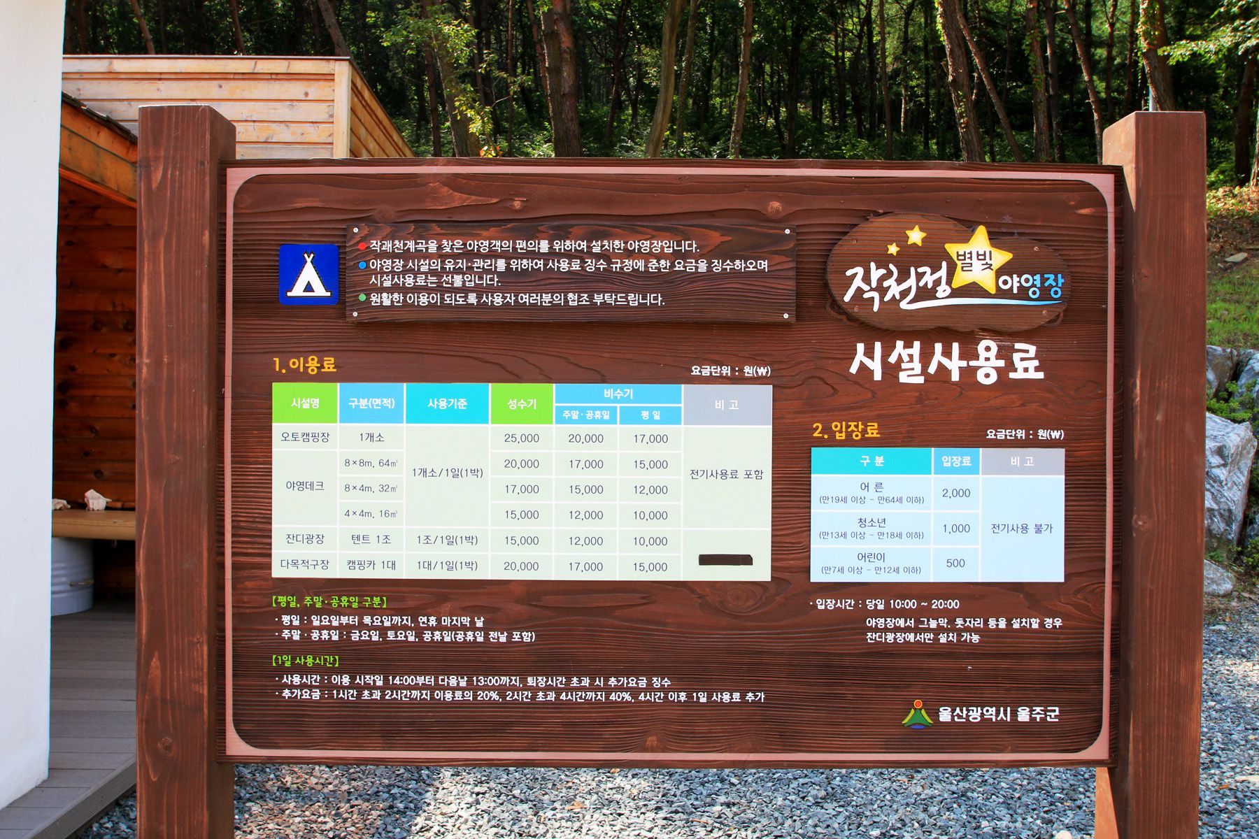 야영장은 작괘천을 따라 배치된 오토캠핑장인 작괘천야영장과 솔숲에 배치된 별빛야영장으로 나뉘어져 있습니다.