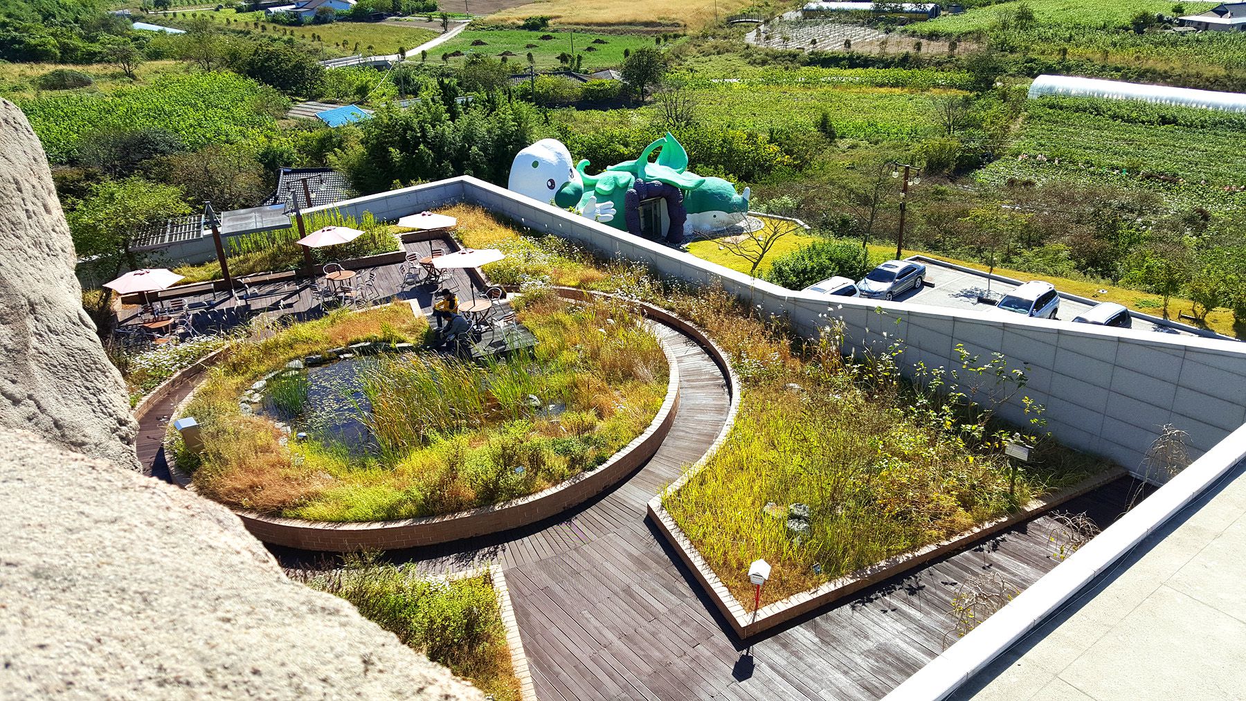 간단한 간식을 즐길수 있는 카페테리어와 시원하고 아기자기 하게 잘 꾸며진 야외정원이