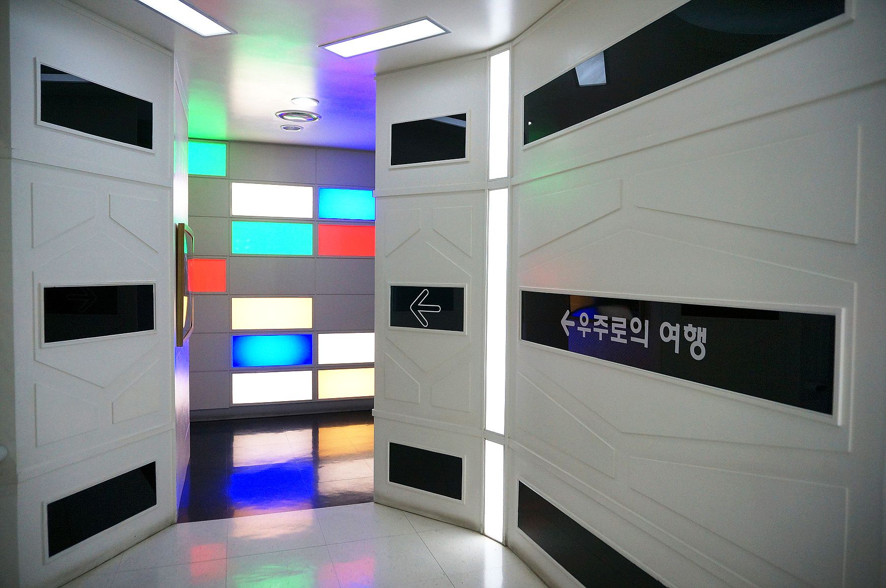 실내 천장 스크린에 우주를 재현하는 공간입니다.