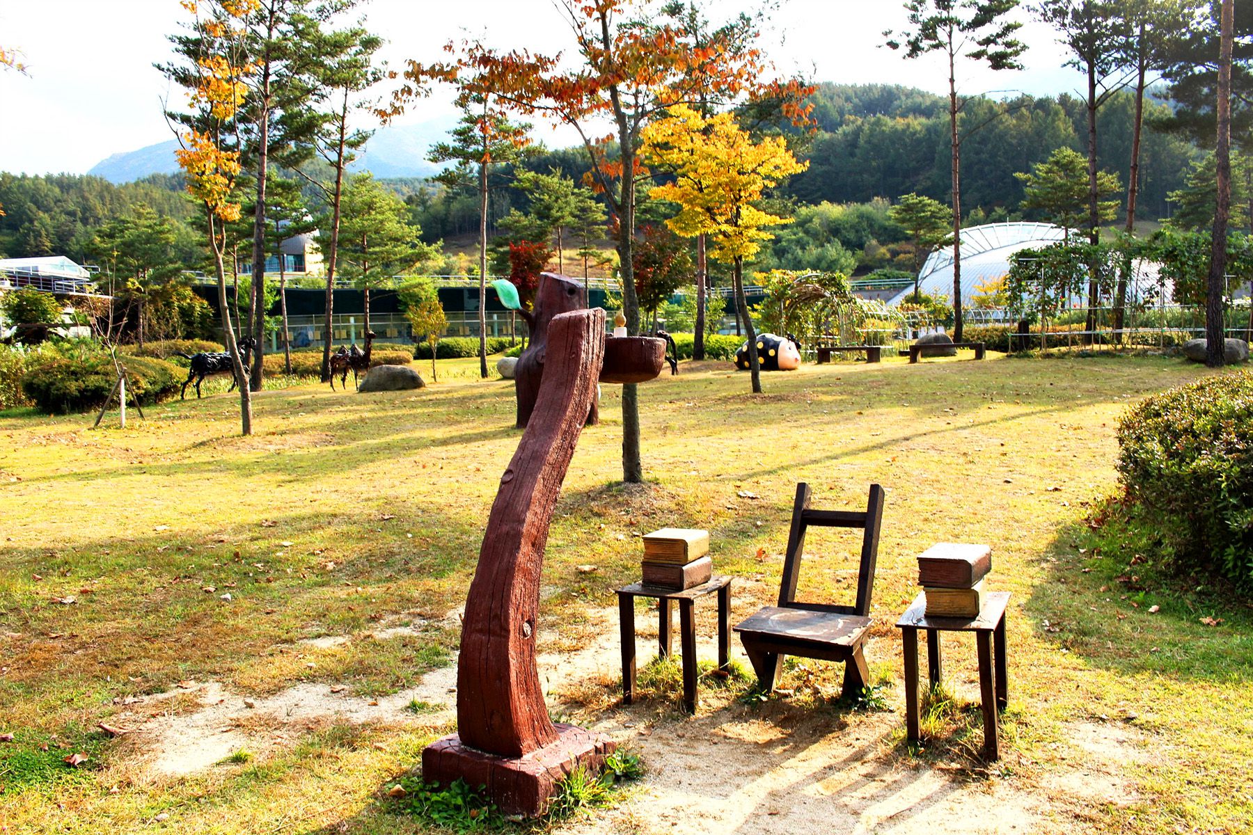 자연과 어우러진 다양한 조형물과 각종 곤충이 살고 있는 생태학습의 장인 환경테마공원은 곳곳에 쉴 곳도 많이 마련되어 있습니다.
