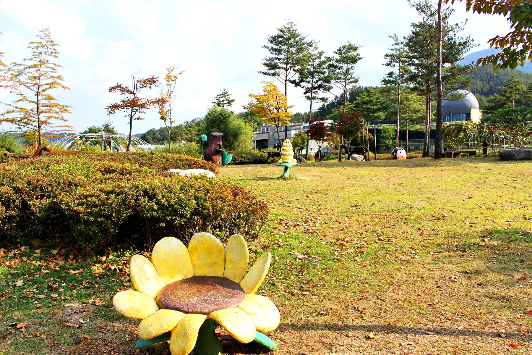 반디랜드에는 아이들의 눈높이에 맞춰 다양한 곤충 모양의 조형물이 설치되어 있습니다.