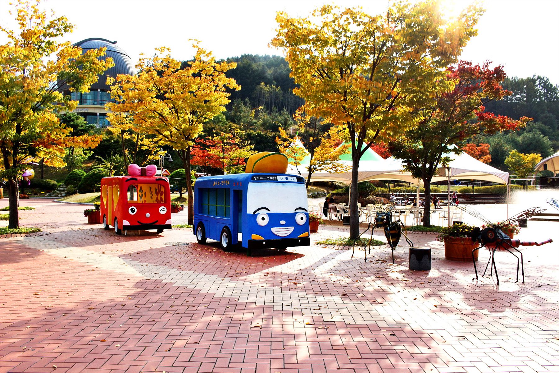 시원한 분수에서 더위를 식히고, 아이들이 좋아하는 꼬마버스와 곤충모형들도 만나보세요~^